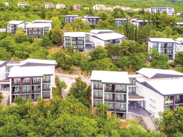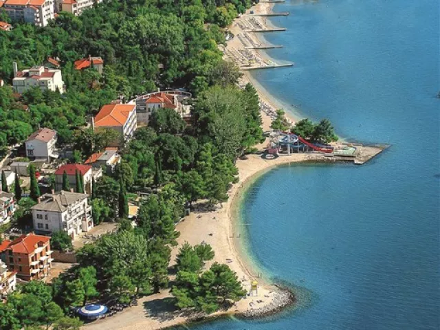 Hotelový komplex pozostáva z hotela a 12 pavilónov umiestnených vo svahu borovicového lesíka pod magistrálou. Živé kúpeľné mestečko Crikvenica s množstvom obchodov, barov a reštaurácií je ľahko dostupné prechádzkou alebo turistickým vláčikom. Blízke adrenalínové a lanové centrum poteší aj mladších dovolenkárov. V okolí nájdete tenisové kurty, minigolf, stolný tenis a živú hudbu na terase hotela Omorika.