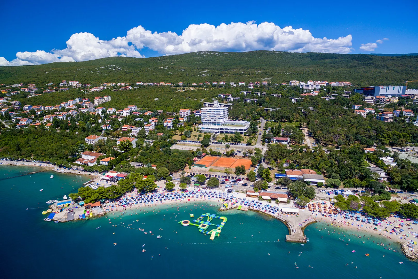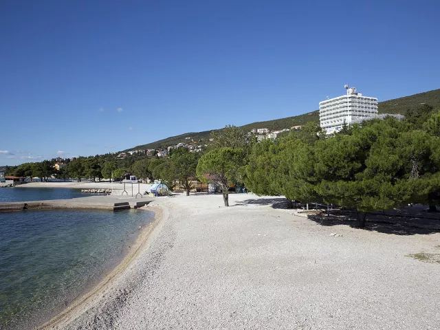 Hotel sa nachádza približne 2 km od centra obľúbeného letoviska Crikvenica, na začiatku plážovej promenády. Vzdialenosť k štrkovej či okruhliakovej pláži je približne 150-200 metrov, s pozvoľným vstupom do mora. Na pláži sú k dispozícii ležadlá a slnečníky za poplatok.