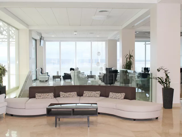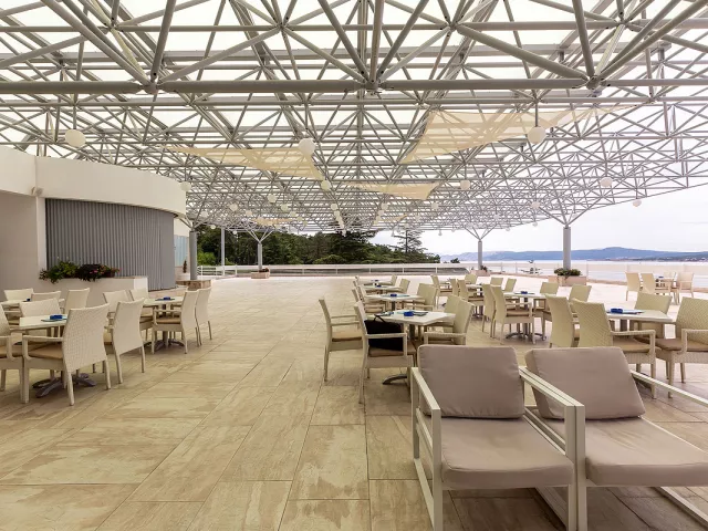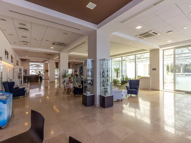 Hotel ponúka elegantnú vstupnú halu s recepciou, klimatizovanú reštauráciu, aperitív bar a terasu s výhľadom na more. K dispozícii je aj vonkajší bazén so sladkou vodou a detský kútik. V celom hoteli je dostupné WiFi pripojenie zadarmo. Pre pohodlie návštevníkov je zabezpečené parkovanie, pričom časť parkoviska je bezplatná.
