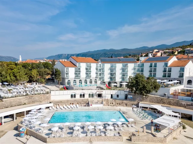Hotel sa nachádza v maličkom mestečku Novi Vinodolski, približne 500 m od centra a nákupných možností. Okolie je plné kultúrnych pamiatok a prírodných krás, pričom hotel je situovaný priamo pri slnečnej pláži, kde sú dostupné aj slnečníky a ležadlá (za poplatok).