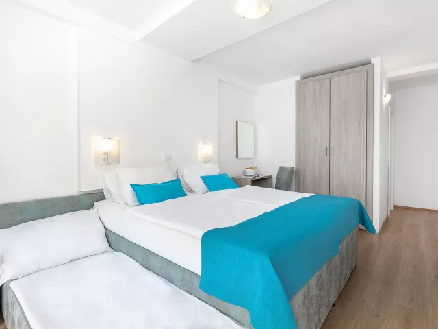 deti do nedovŕšených 2 rokov zdarma (bez nároku na lôžko a služby; max. 1 dieťa nad rámec plnej obsaditeľnosti izby) *maximálna obsaditeľnosť izby Standard 2+1 BM sú 2 dospelé osoby a 1 dieťa do nedovŕšených 18 rokov detská postieľka: zdarma (len na požiadanie v CK; max. 1 nad rámec plnej obsaditeľnosti izby; pre dieťa do nedovŕšených 2 rokov) * služby za príplatok