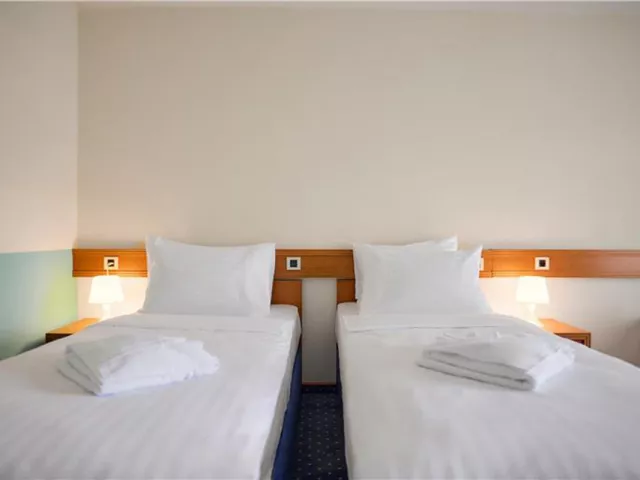 Izba Standard 2 je umiestnená v podkroví na 6. poschodí, pričom výťah premáva len do 5. poschodia, takže je potrebné vyjsť posledný úsek pešo.