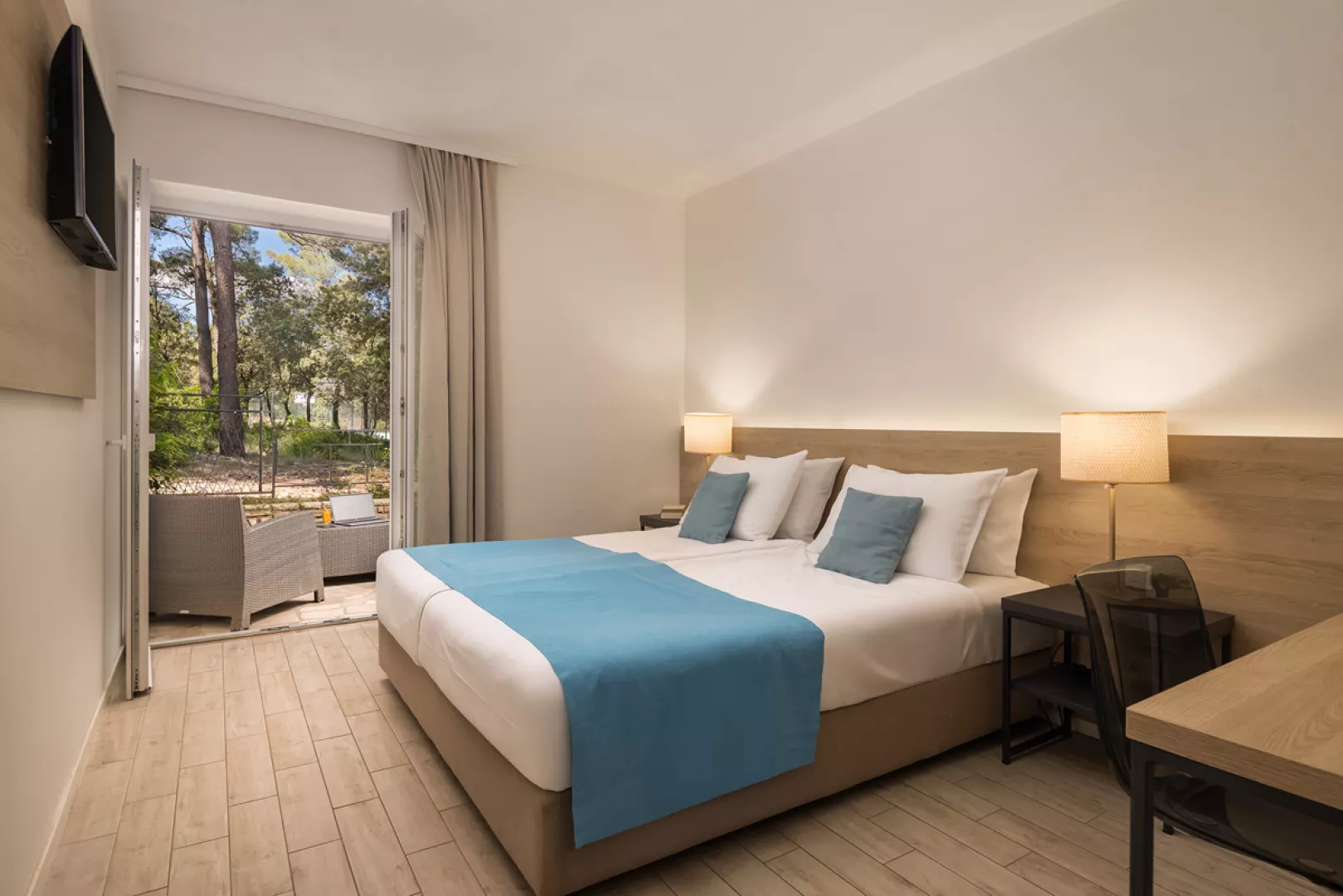 Rezort disponuje klimatizovanými superior izbami, ktoré sú vhodné pre 2 osoby s možnosťou prístelky. Izby sú vybavené sprchou/WC, fénom, SAT TV, telefónom, trezorom a balkónom s výhľadom na more alebo do záhrady. Wi-Fi je dostupné zdarma v celom zariadení.