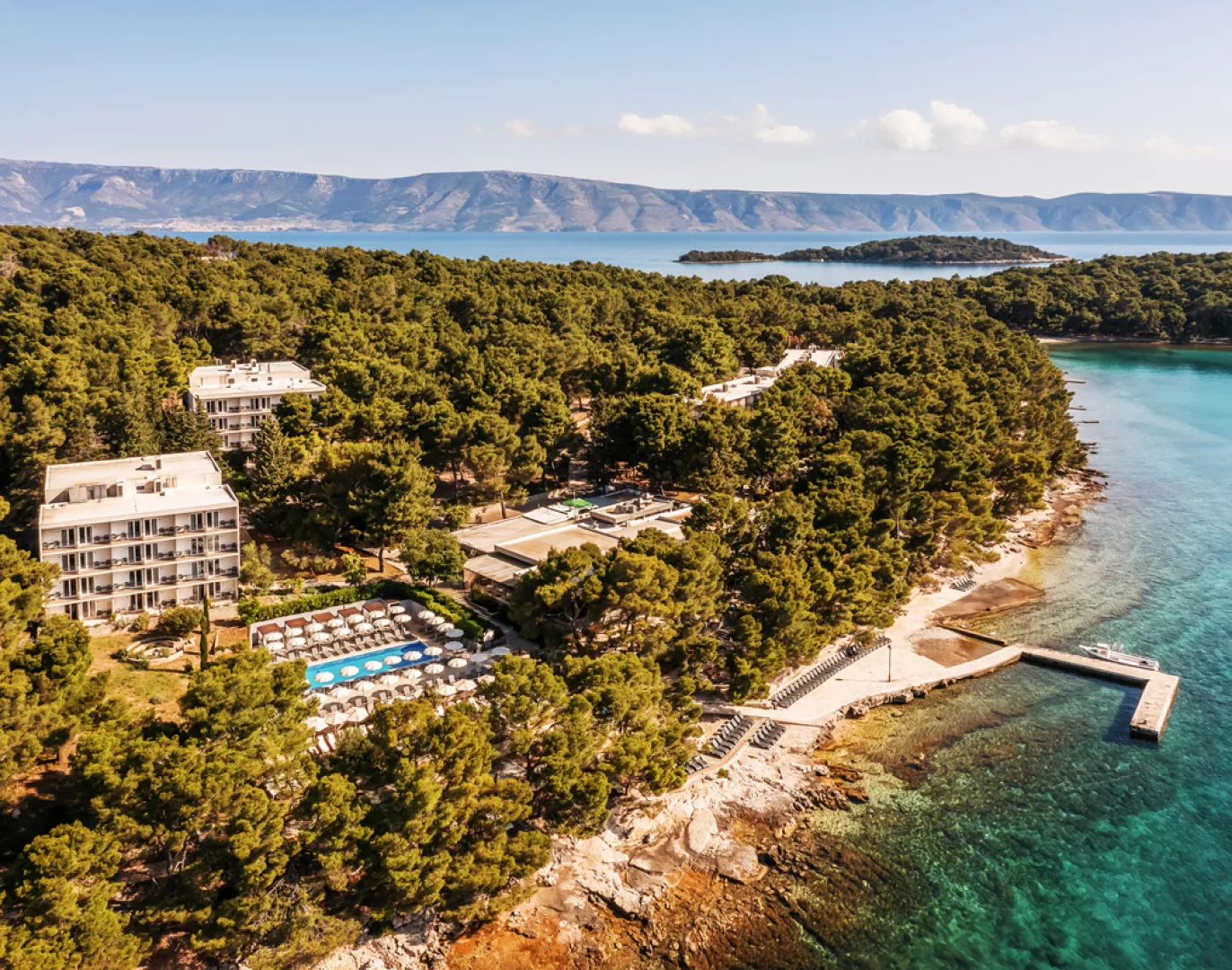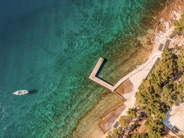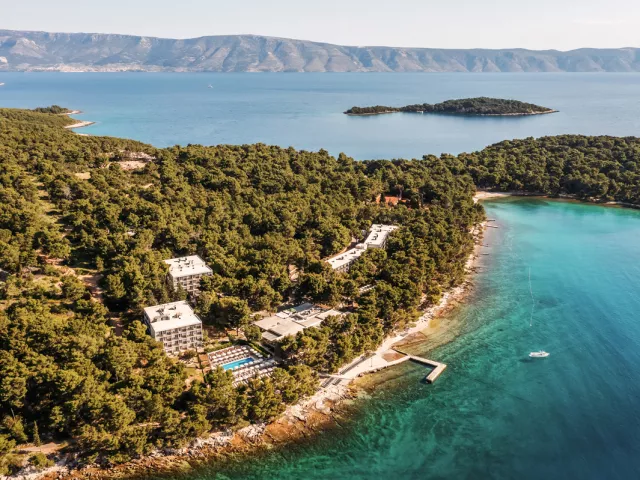 Aminess Younique Senses Resort sa nachádza v tichom zálive blízko centra letoviska Vrboska, asi 2 km od jeho centra. Pláž je vzdialená len 50 až 200 metrov, pričom sa k nej dostanete po príjemnej prechádzke popri mori. Rezort je 11 km od trajektu v stredisku Stari Grad a 33 km od letiska na ostrove Brač, dostupného transferom.