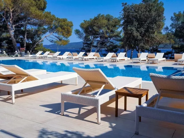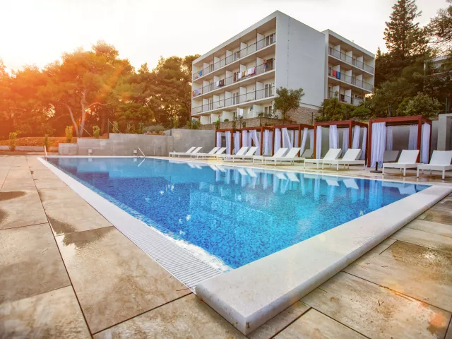 V blízkosti hotela sa nachádza dlhá kamienková pláž Soline, na ktorú je prístup z rezortu. Na pláži sú k dispozícii slnečníky a ležadlá za poplatok, beach bar či vodné športy. Hotel tiež ponúka vonkajší bazén s vyhrievanou sladkou vodou a ležadlami, ktoré sú k dispozícii zdarma (v obmedzenom množstve).