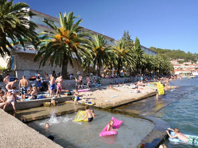Vela Luka, centrum - 2 km, pláž / okruhliaková, kamenistá miestami betónové platne - 20 m, letisko Dubrovník – 180 km