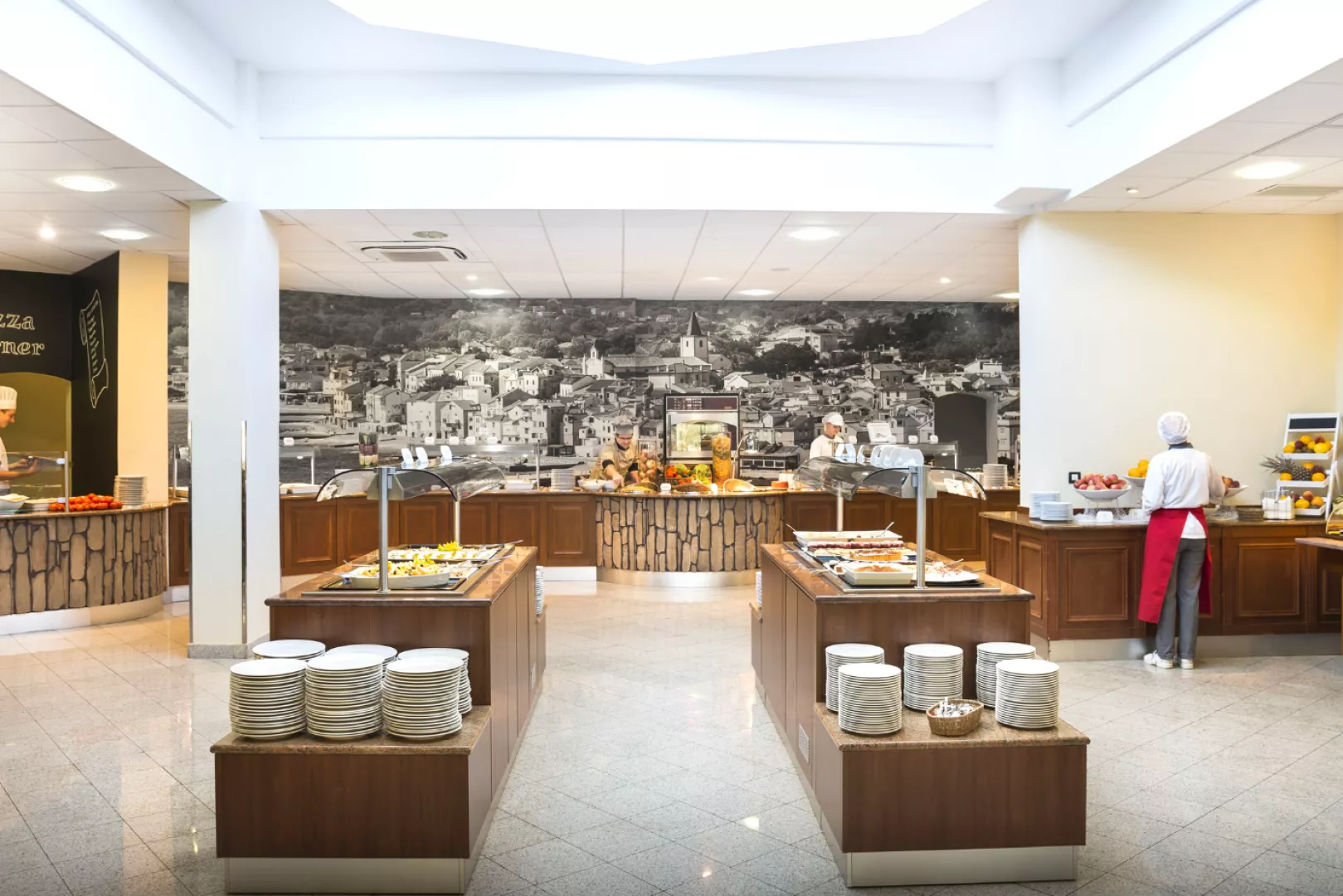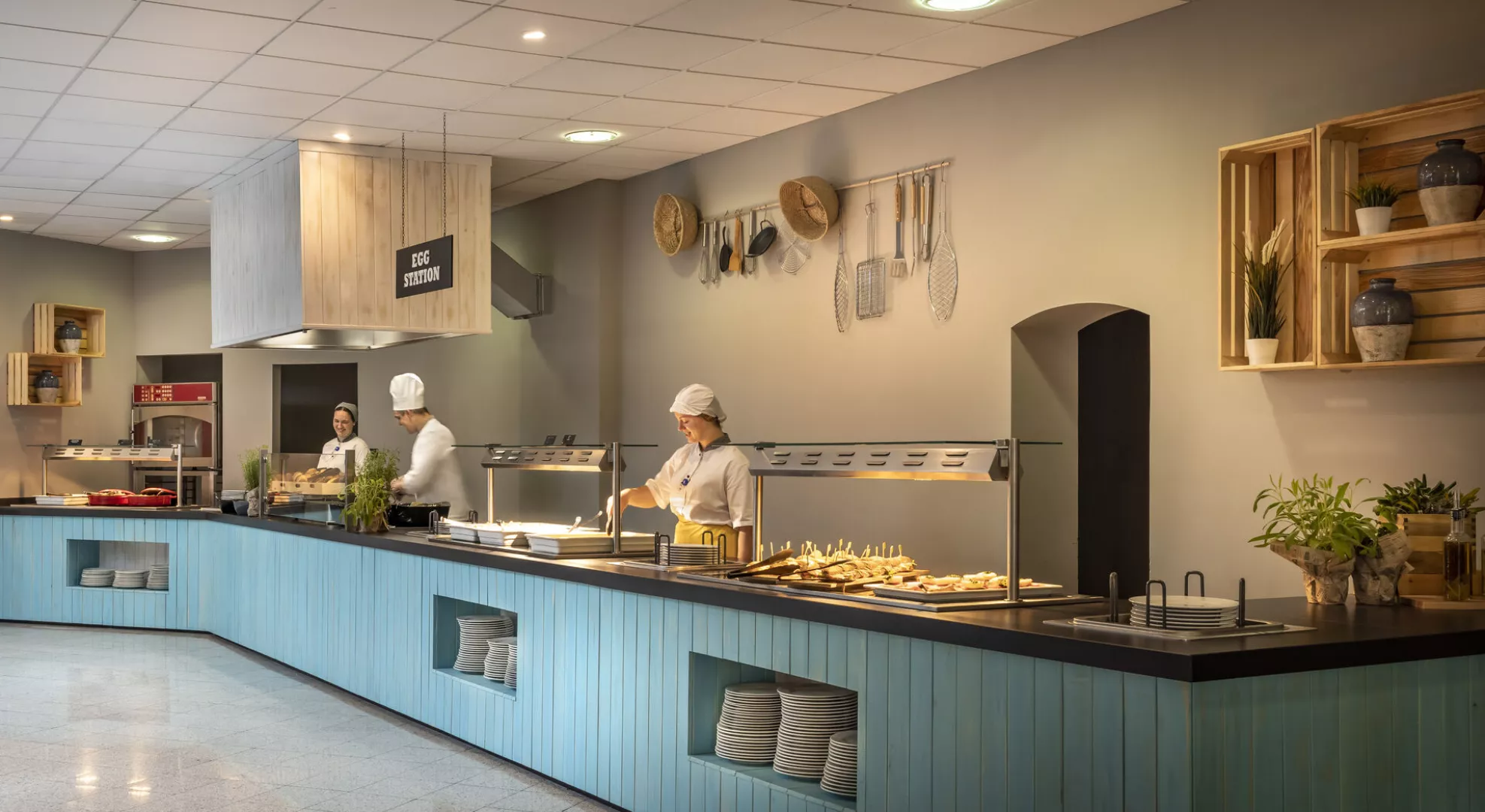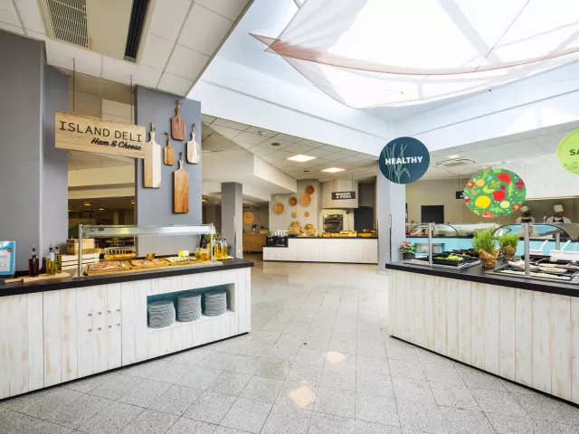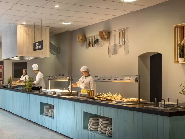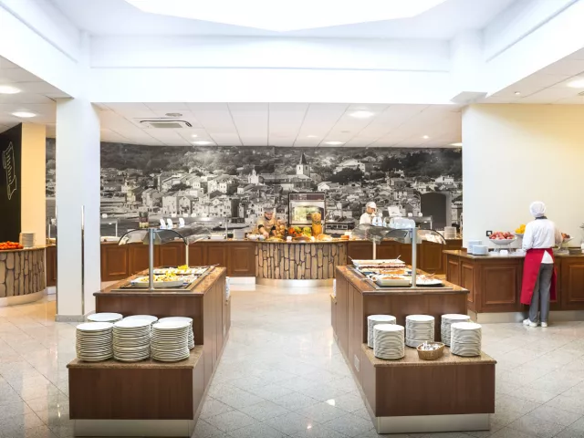 Stravovanie prebieha formou bufetu, zahŕňa raňajky a večere s pestrým výberom jedál. Neskoré raňajky sú podávané až do 13:00, s možnosťou vyberania z tematických bufetových staníc a širokého sortimentu pokrmov. Nápoje počas večere sú za príplatok.