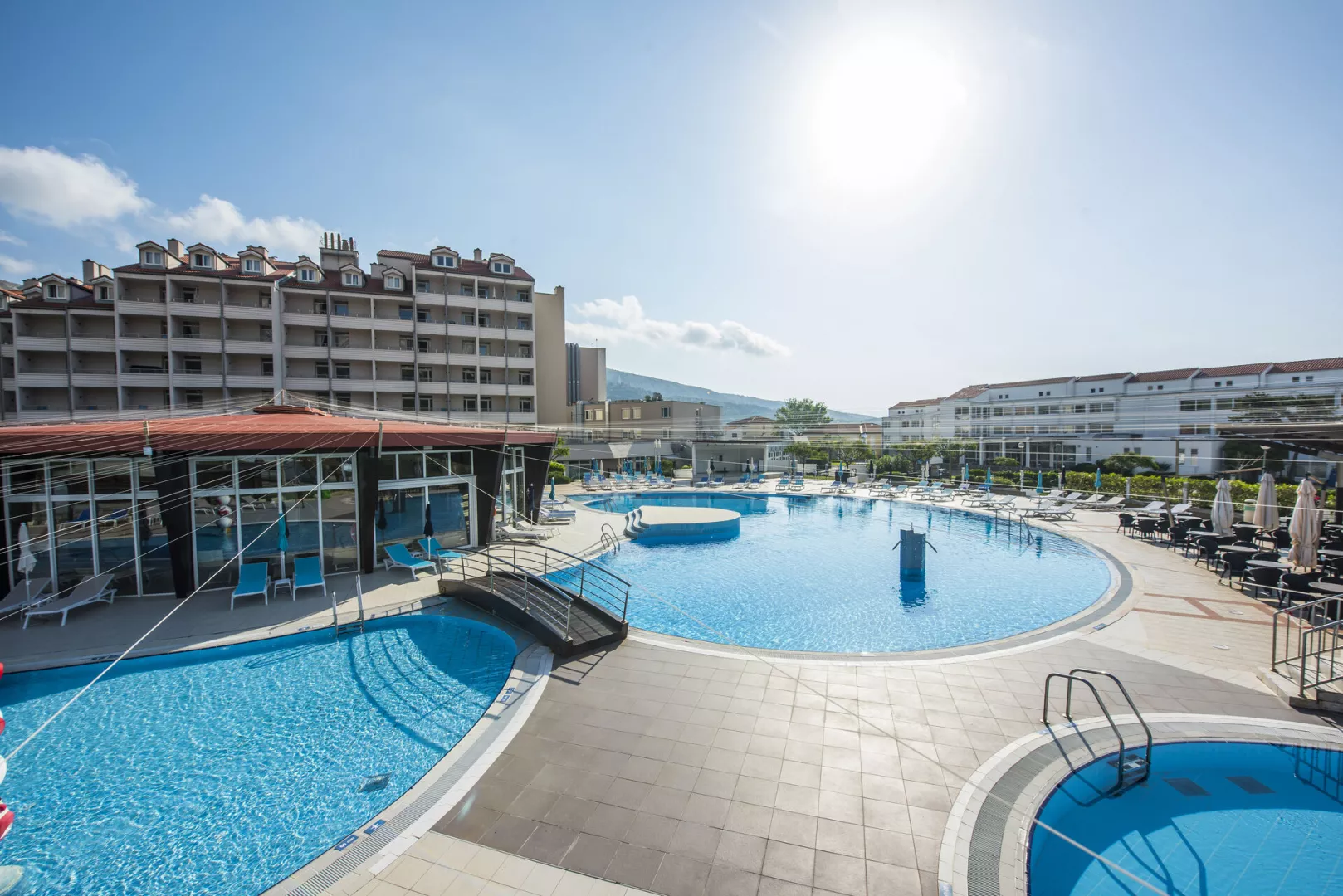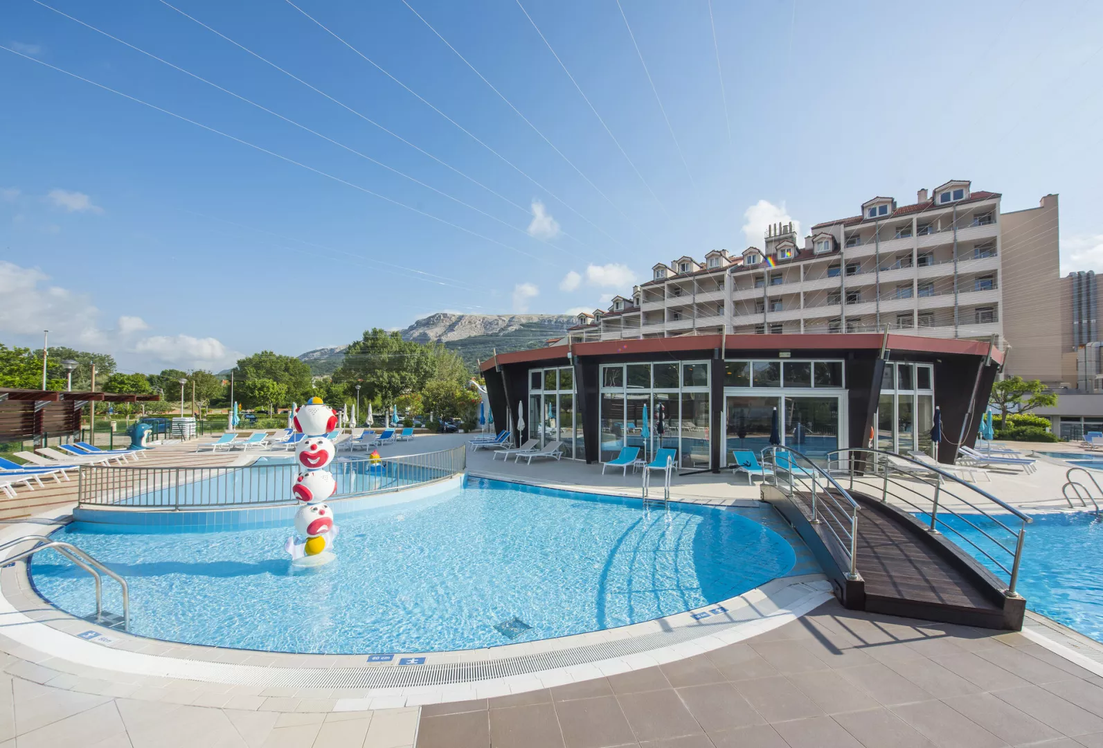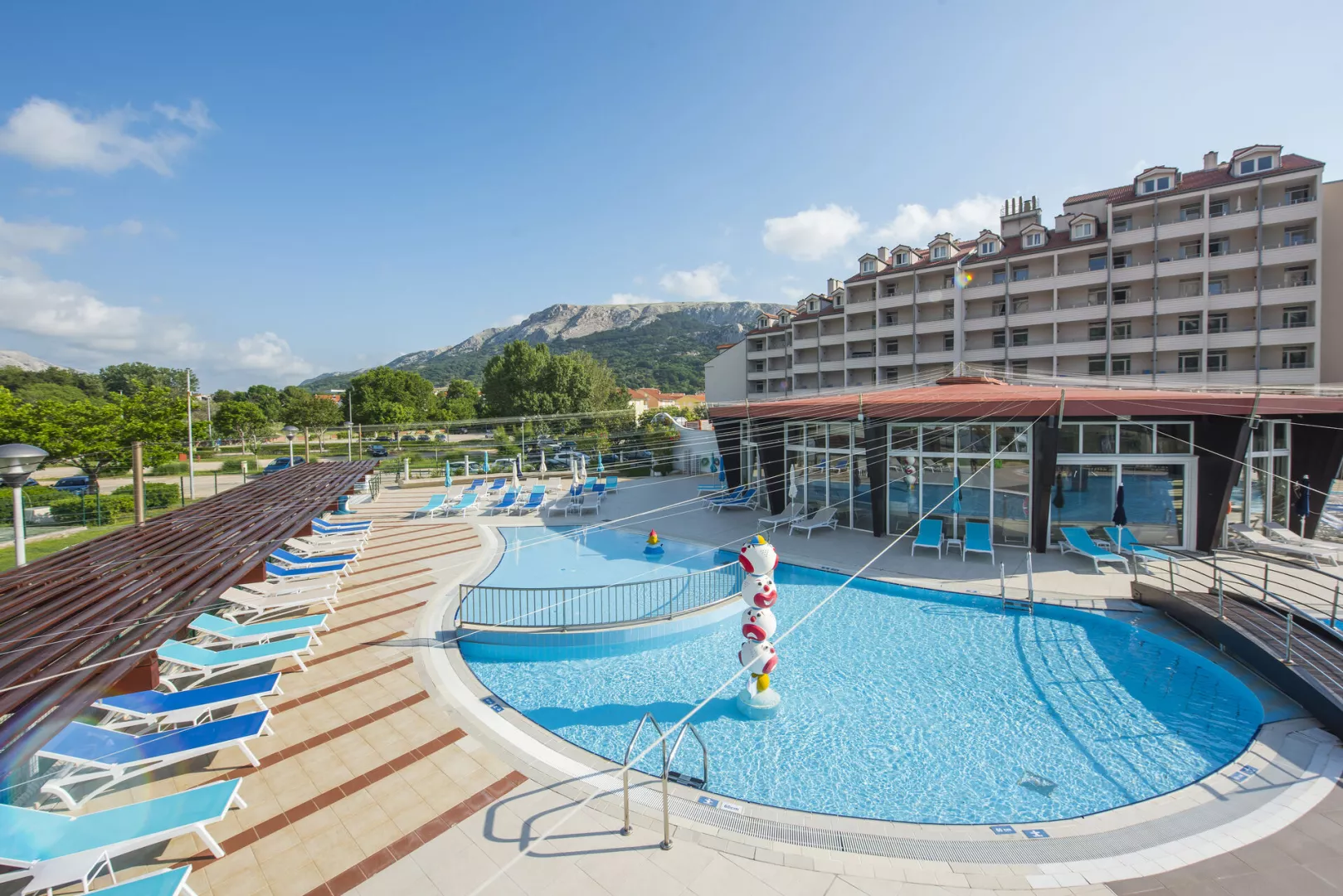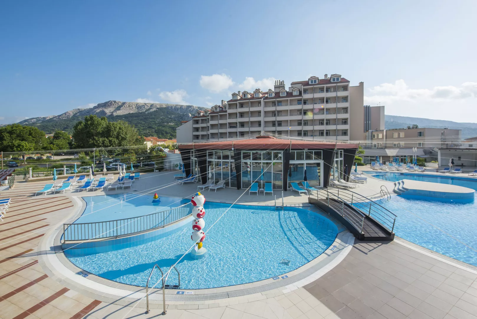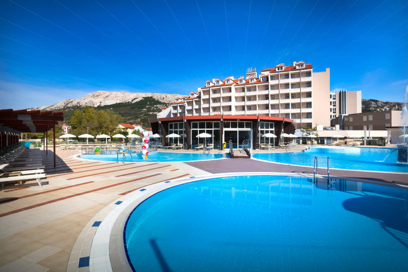 Hotelový komplex sa skladá z troch navzájom prepojených budov. Pláž Vela Plaža je známa svojou dlhou piesočnatou plážou a krištáľovo čistou vodou, ideálna na odpočinok a relax. Na pláži sú k dispozícii ležadlá a slnečníky za príplatok.