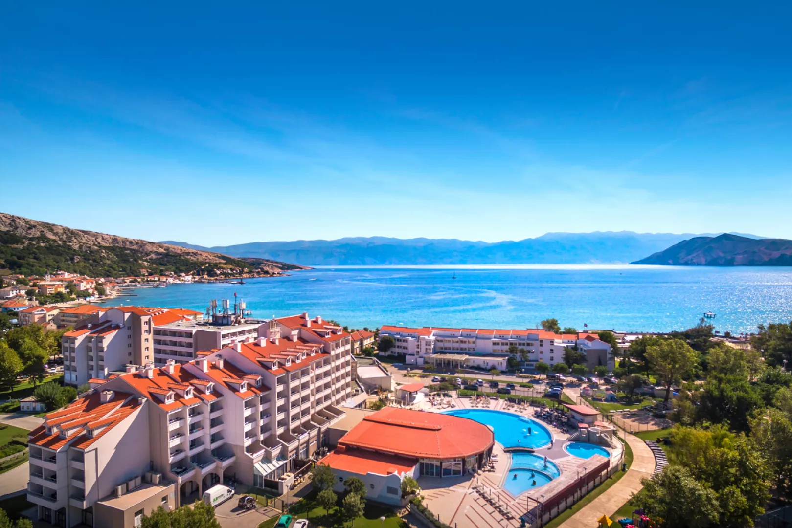 Sunny Baška Hotel sa nachádza v blízkosti centra Bašky, približne 10 minút pešo od pobrežnej promenády. Ubytovanie je vzdialené len 20 m od štrkovej pláže, ktorú od hotela oddeľuje prímorská promenáda.