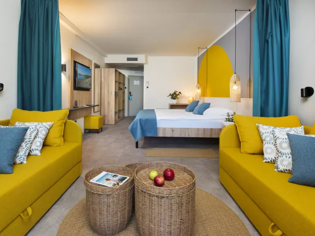 Izby sú klimatizované a vybavené sprchou/WC, fénom, TV, telefónom, trezorom a WiFi pripojením. K dispozícii sú 2-lôžkové izby (16-34 m²) niekoľkých typov, vrátane izieb s balkónmi a prístelkami.