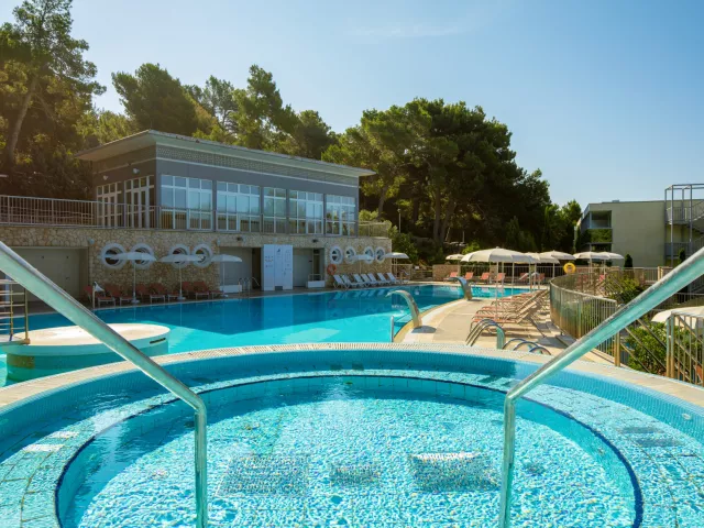 Hotel sa nachádza v "Slnečnej zátoke", priamo pri mori, s dostatkom zelene a borovic, len 50 metrov od pláže a 20 minút chôdze od centra mestečka Mali Lošinj. V blízkosti sa nachádza aj nový aquapark "Čikat", vzdialený 3 km od hotela.