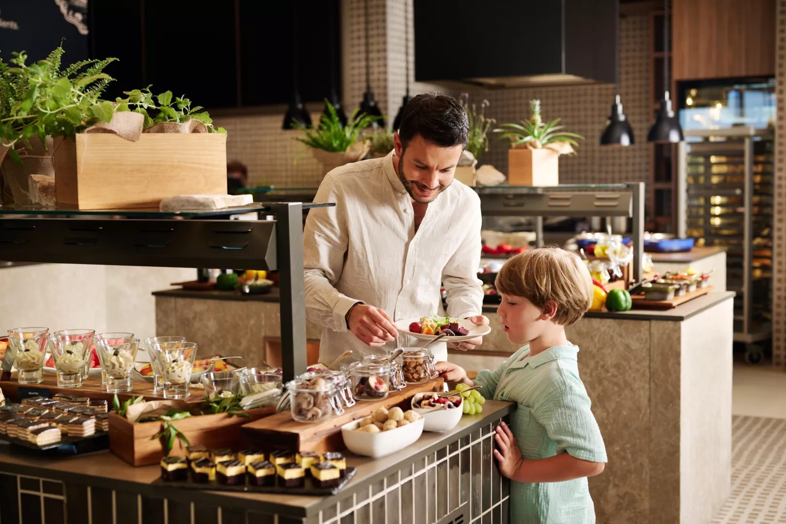 plná penzia formou bufetových stolov • poobedný snack • nealkoholické nápoje z automatu, horúce nápoje, pivo a víno počas obeda a večere