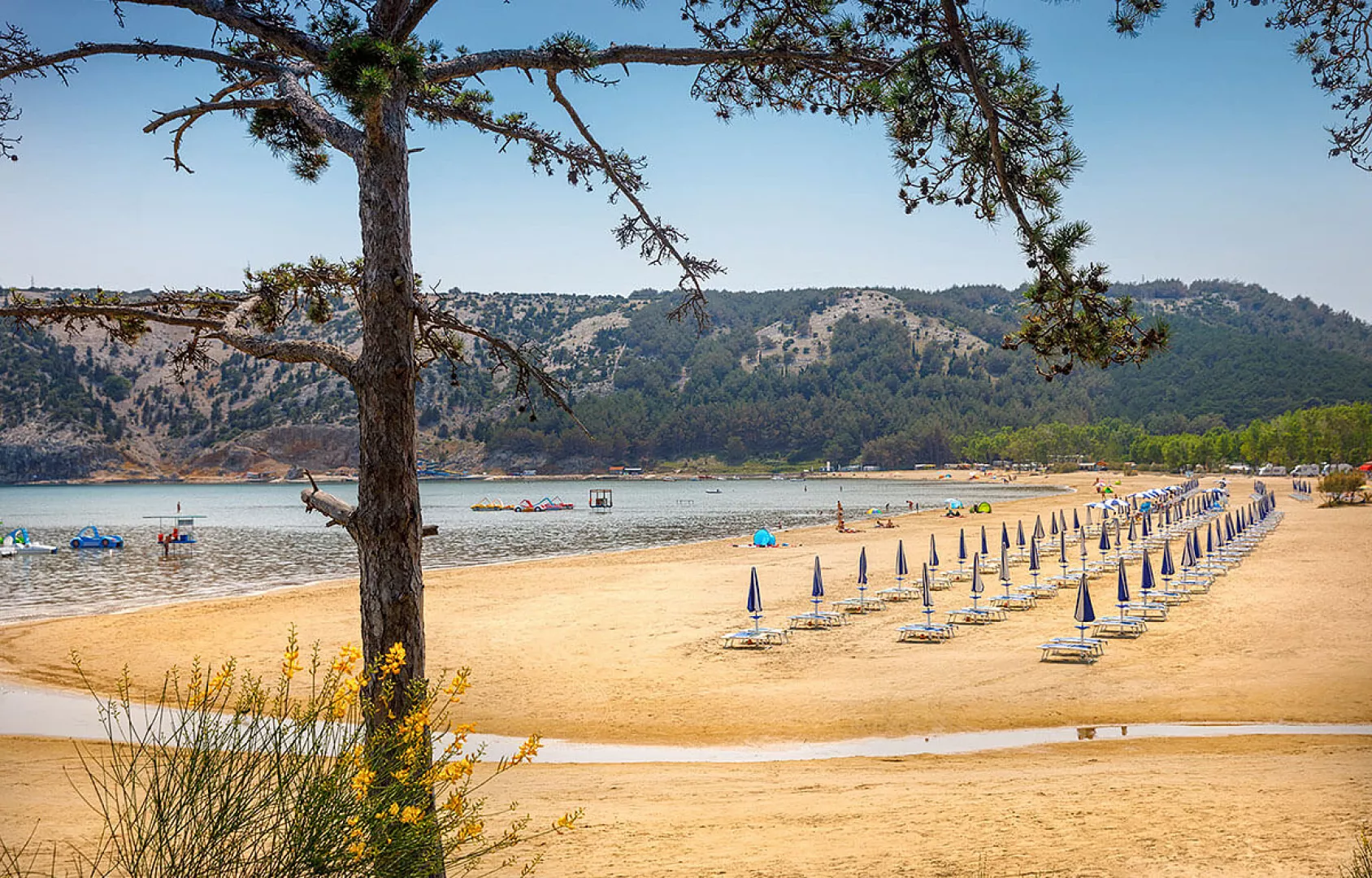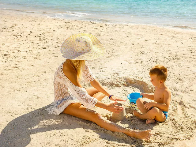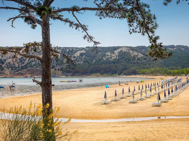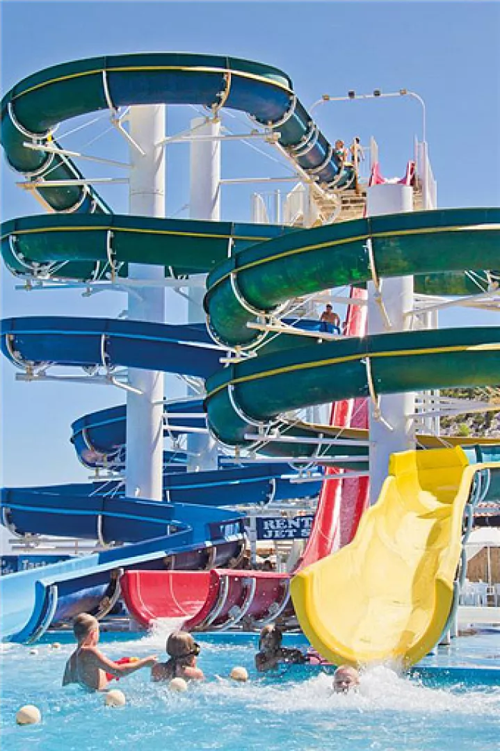 Komplex sa skladá z piatich hotelov (pavilónov) a hlavnej budovy, kde je umiestnená centrálna reštaurácia. Tiahne sa pozdĺž 1,5 km dlhej „Rajskej pláže“, ktorá je známa svojím pieskom a pozvoľným vstupom do mora, čo ju robí ideálnou pre malé deti a neplavcov. Ležadlá a slnečníky sú k dispozícii za poplatok.
