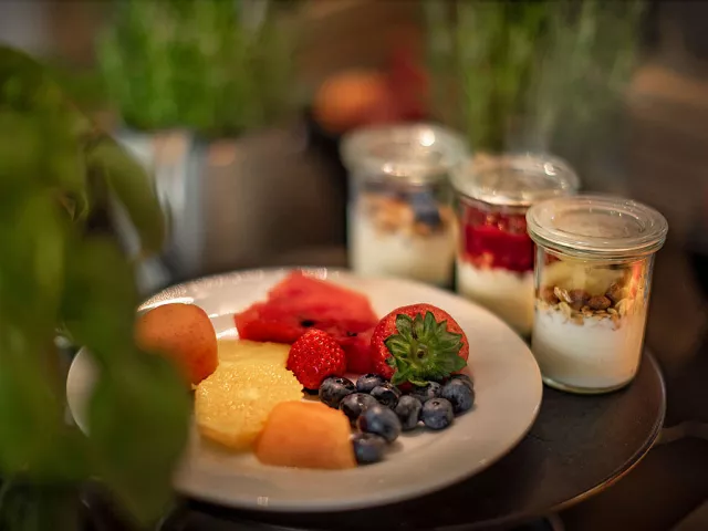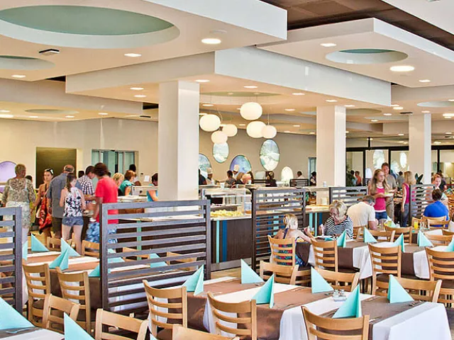 Ponúka sa polpenzia, ktorá zahŕňa raňajky a večere podávané formou bufetu v centrálnej reštaurácii. K večeri sú k dispozícii neobmedzené čapované nápoje (červené a biele víno, pivo a nealko nápoje).