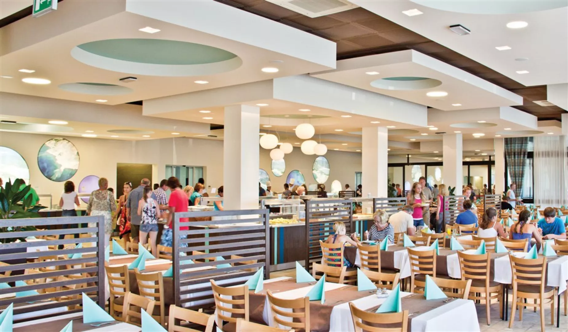 Stravovanie je zabezpečené formou polpenzie, s raňajkami a večerami podávanými v bufetovom štýle v centrálnej reštaurácii. K večeri sú k dispozícii čapované nápoje (červené/biele víno, pivo, nealkoholické nápoje).