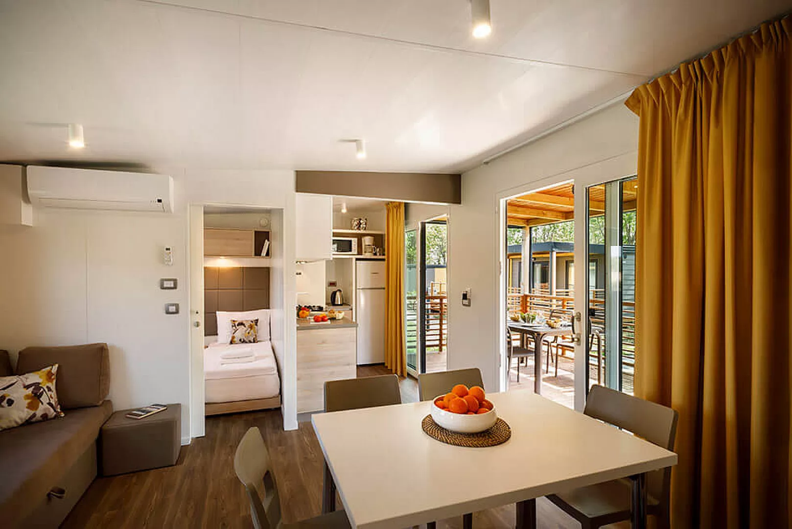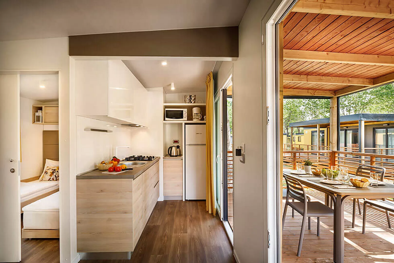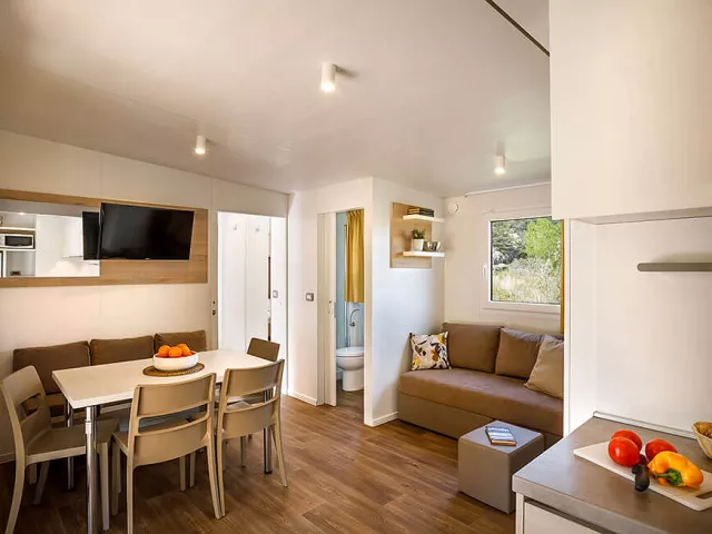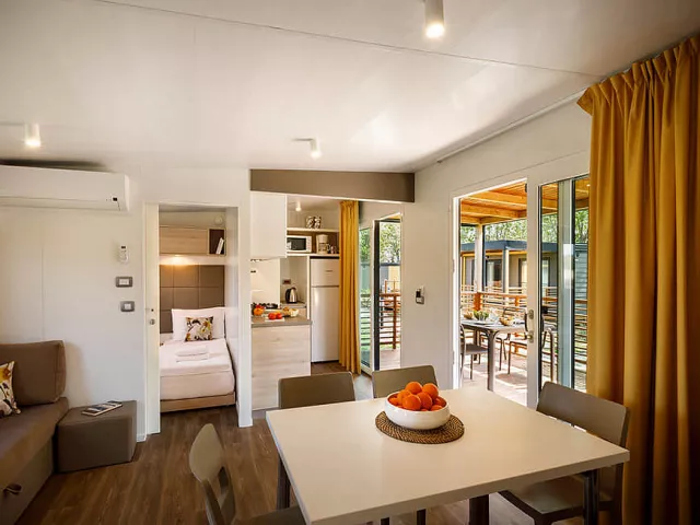 *maximálna obsaditeľnosť mobilného domu sú 4 dospelé osoby a 2 deti do nedovŕšených 12 rokov pobyt so psom je možný len na požiadanie, je nutné uhradiť v CK povinný poplatok za psa a za dezinfekciu mobilného domu, platba na mieste detská postieľka: 5 € / deň, úhrada na mieste (na požiadanie v CK; nemožno nad rámec plnej obsaditeľnosti mobilhome; pre dieťa do nedovŕšených 2 rokov) * služby za príplatok
