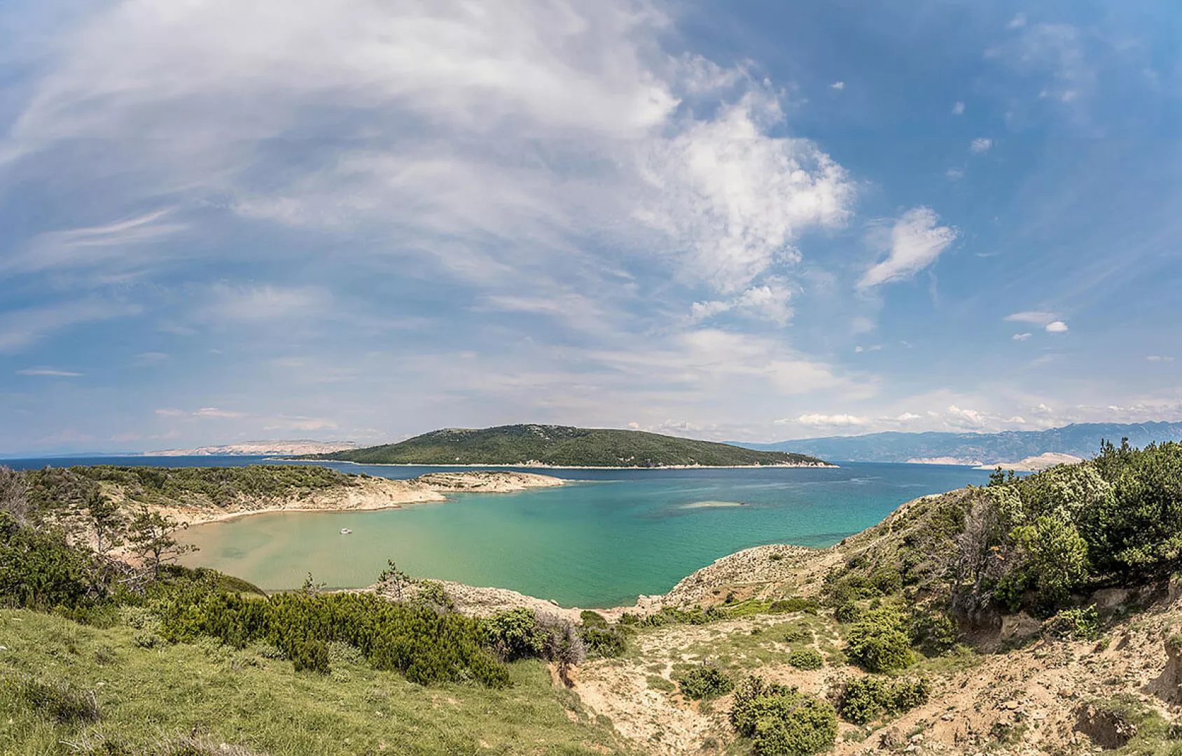 Ostrov Rab, lokalita Lopar, pláž / piesočná – 50 až 200 m (záleží na umiestnení MH), letisko Rijeka – 120 km, Zadar – 150 Km