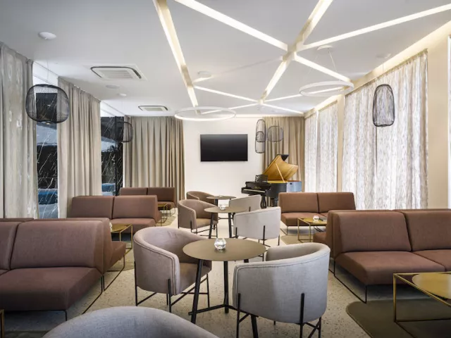 Hotel ponúka rôzne typy izieb: dvojlôžkové izby s morským výhľadom, jednolôžkové izby a izby s možnosťou prístelky pre dieťa do 12 rokov. Všetky izby sú vybavené TV/SAT, WiFi, klimatizáciou, minibarom, trezorom, vlastným sociálnym zariadením, sušičom na vlasy a balkónom alebo terasou. V hoteli sa nachádzajú aj klimatizovaná reštaurácia Mediterraneo, a la carte reštaurácia Oliva Grill s terasou, dva vonkajšie bazény, Spa centrum, a požičovňa bicyklov. Ubytovanie so psami je povolené za príplatok.