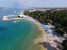 Pláže v tejto oblasti sú prevažne štrkovité a okruhliakové, s niektorými miestami piesočnatými. Najbližšia pláž sa nachádza vo vzdialenosti 50-100 m, pričom za čistotu bola ocenená Modrou vlajkou EU. K dispozícii sú aj lehátka a slnečníky za poplatok, spolu s plážovým barom a príjemným tieňom z borovíc.