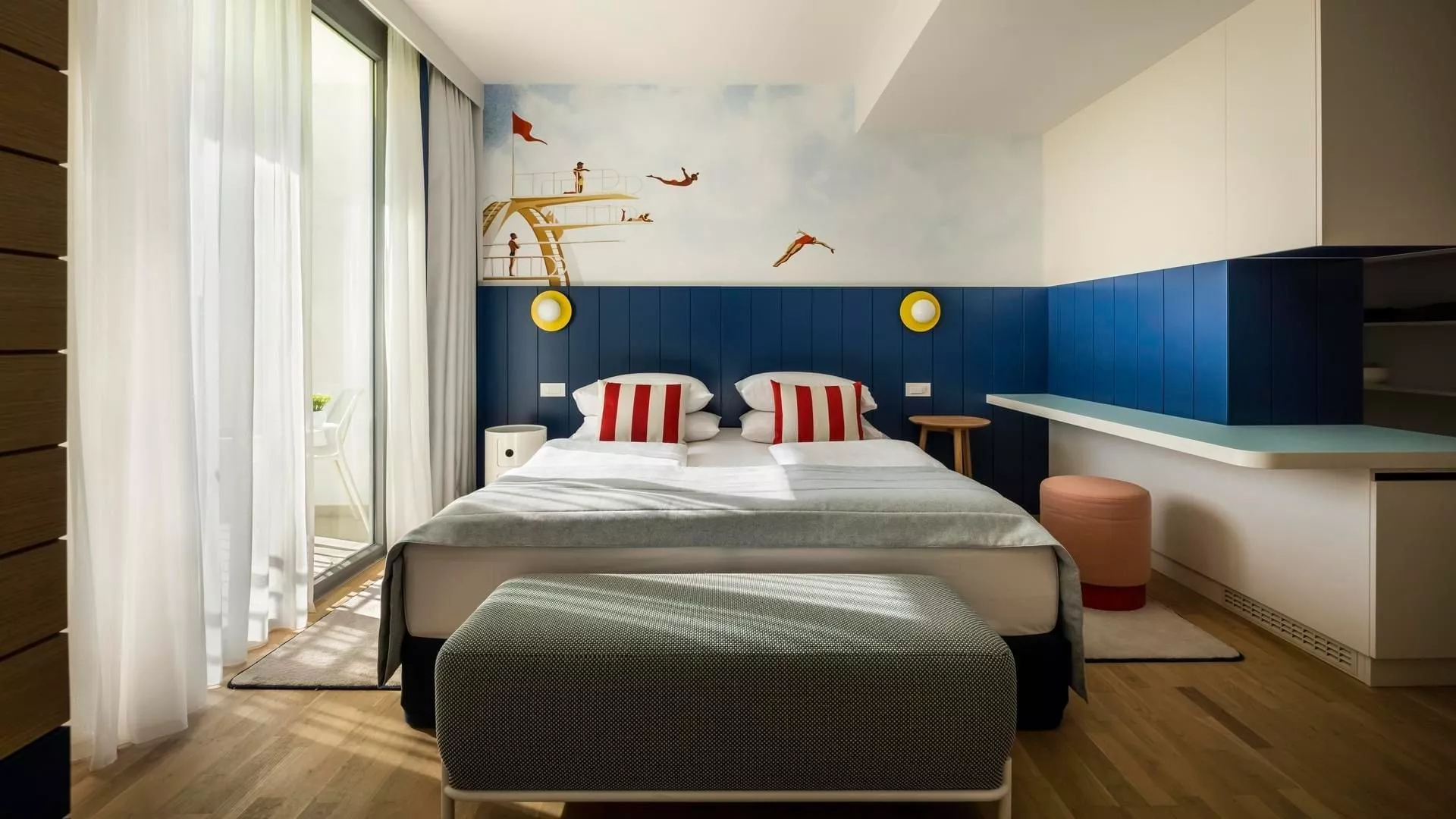 Hotel ponúka klimatizované izby s kúpeľňou, sušičom vlasov, plážovou taškou, SAT TV, minibarom, telefónom a Wi-Fi zdarma. Typy ubytovania zahŕňajú rodinné izby a suity s oddelenými priestormi na spanie pre deti, pričom sú možné aj izby orientované na morskú stranu.