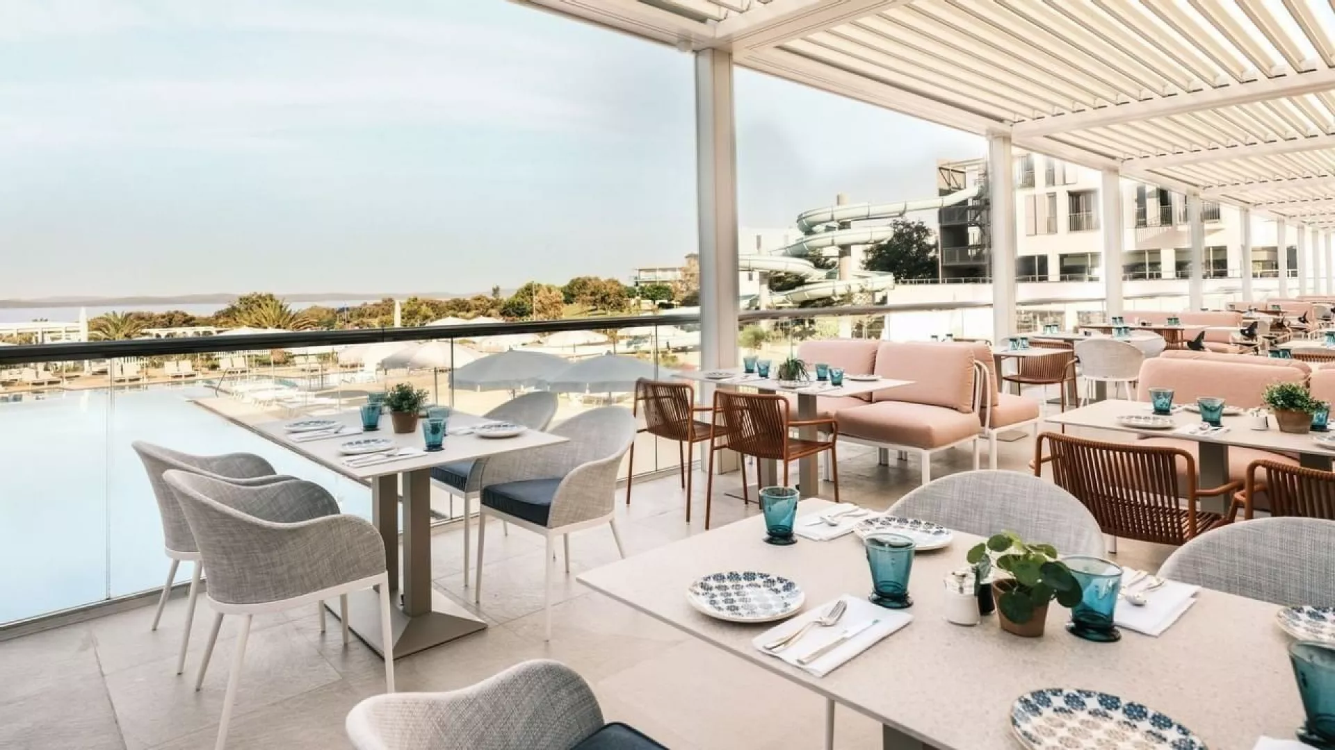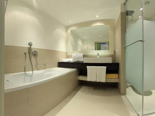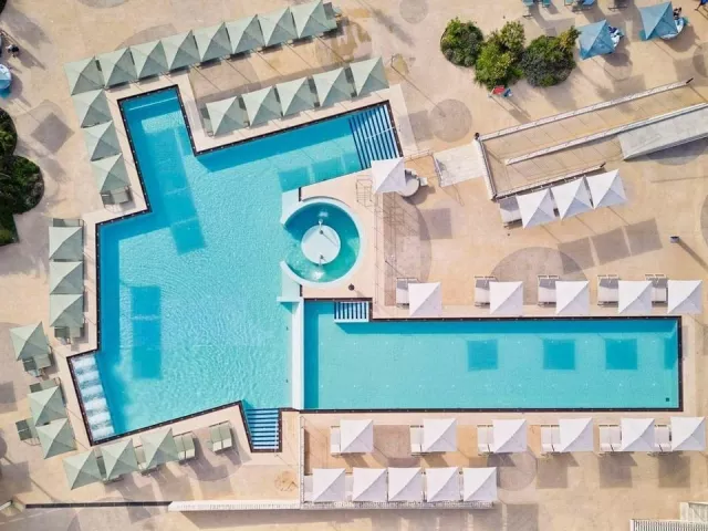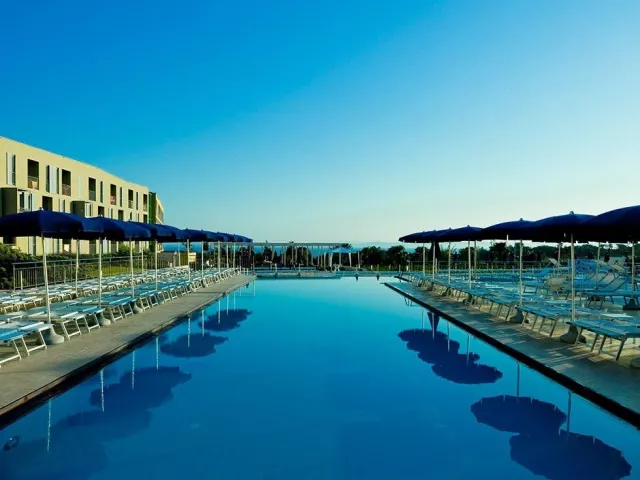 Hotel má 250 izieb, recepciu, reštauráciu, lobby bar a wellness s vnútorným a vonkajším bazénom. Športové vyžitie zahŕňa tenisové kurty, minigolf a programy pre dospelých ako joga či vodná gymnastika. Možnosť požičania bicyklov, vodných športov a parkovania v garáži je za poplatok.