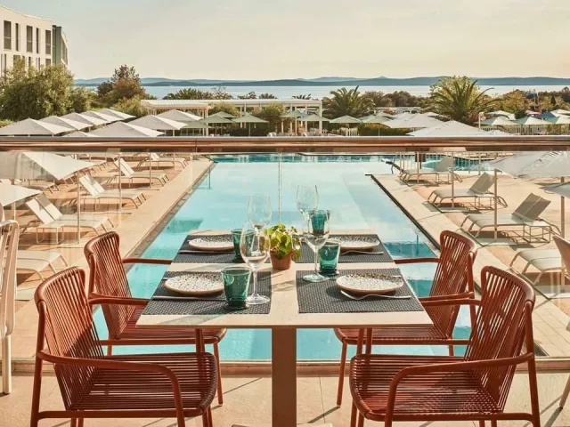 Hotel sa nachádza na polostrove Punta Skala, obkolesený mediteránskou zeleňou, s fantastickým výhľadom na chorvátske Jadranské more a ostrovy. Priamo pri pláži, iba 1,5 km od centra Petrčane a 12 km od Zadaru.