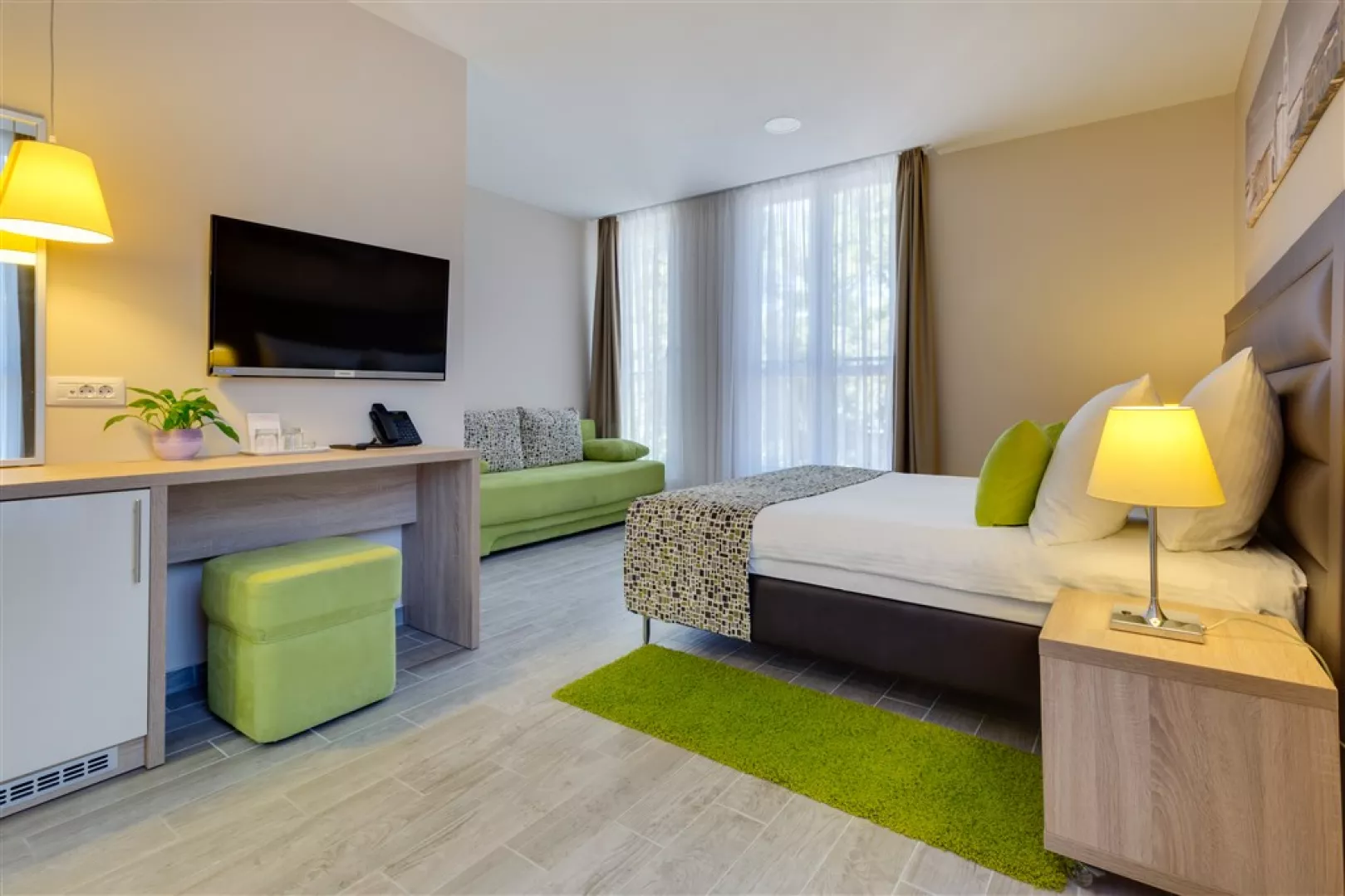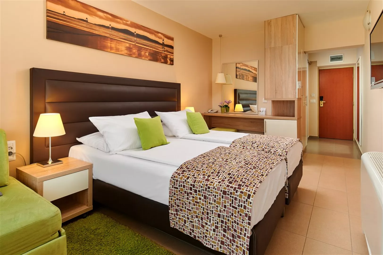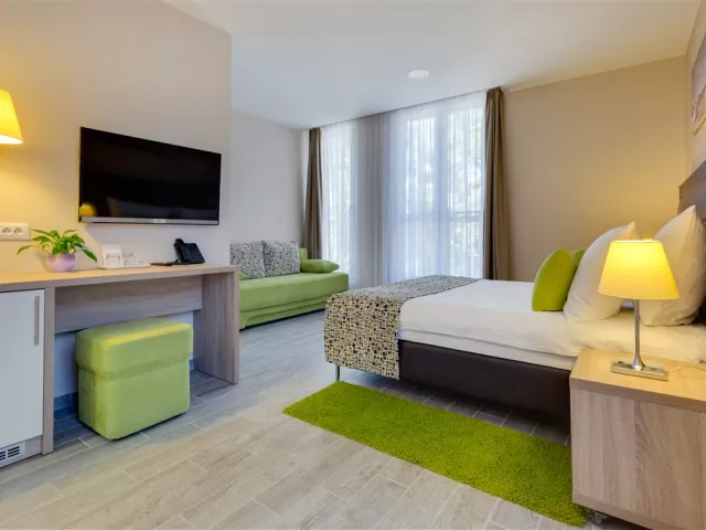 Izby sú klimatizované a vybavené kúpeľňou, sušičom vlasov, malou chladničkou (minibar na vyžiadanie), SAT TV, telefónom a trezorom. Typy izieb zahŕňajú: