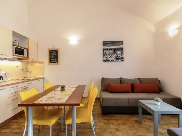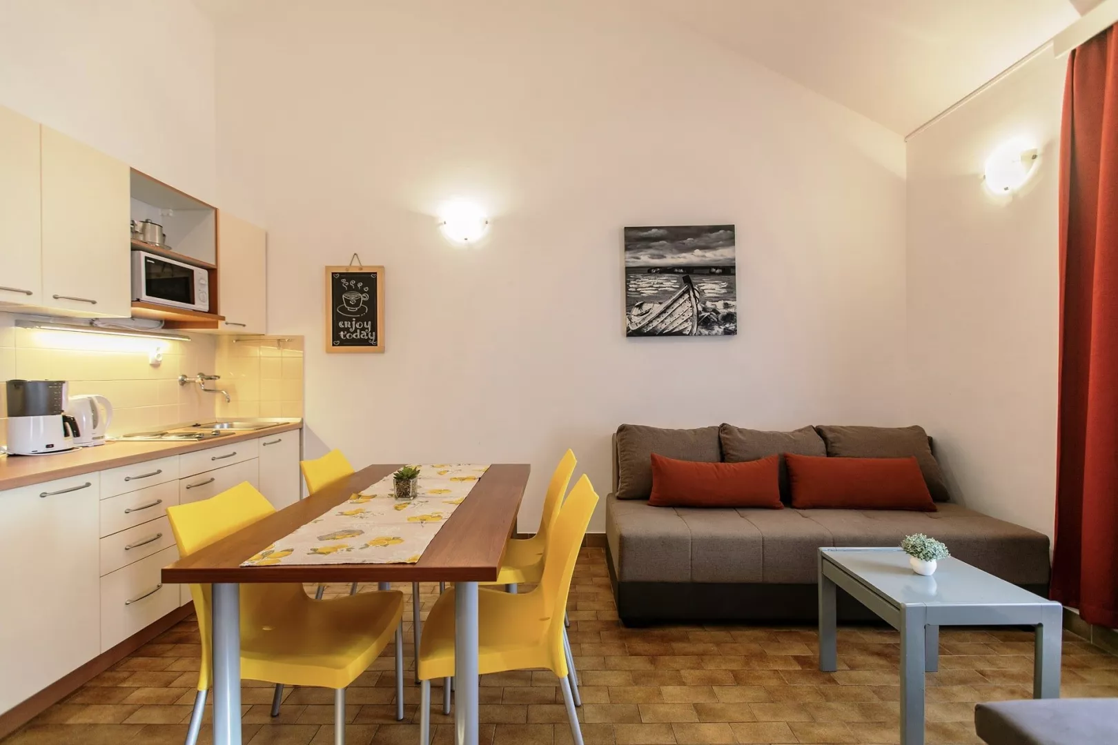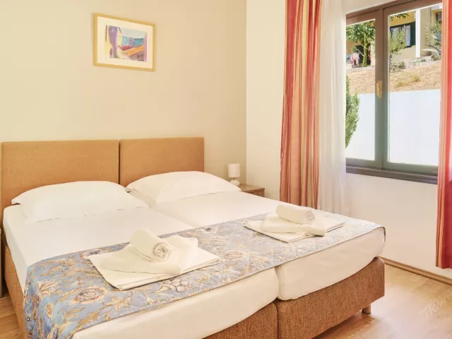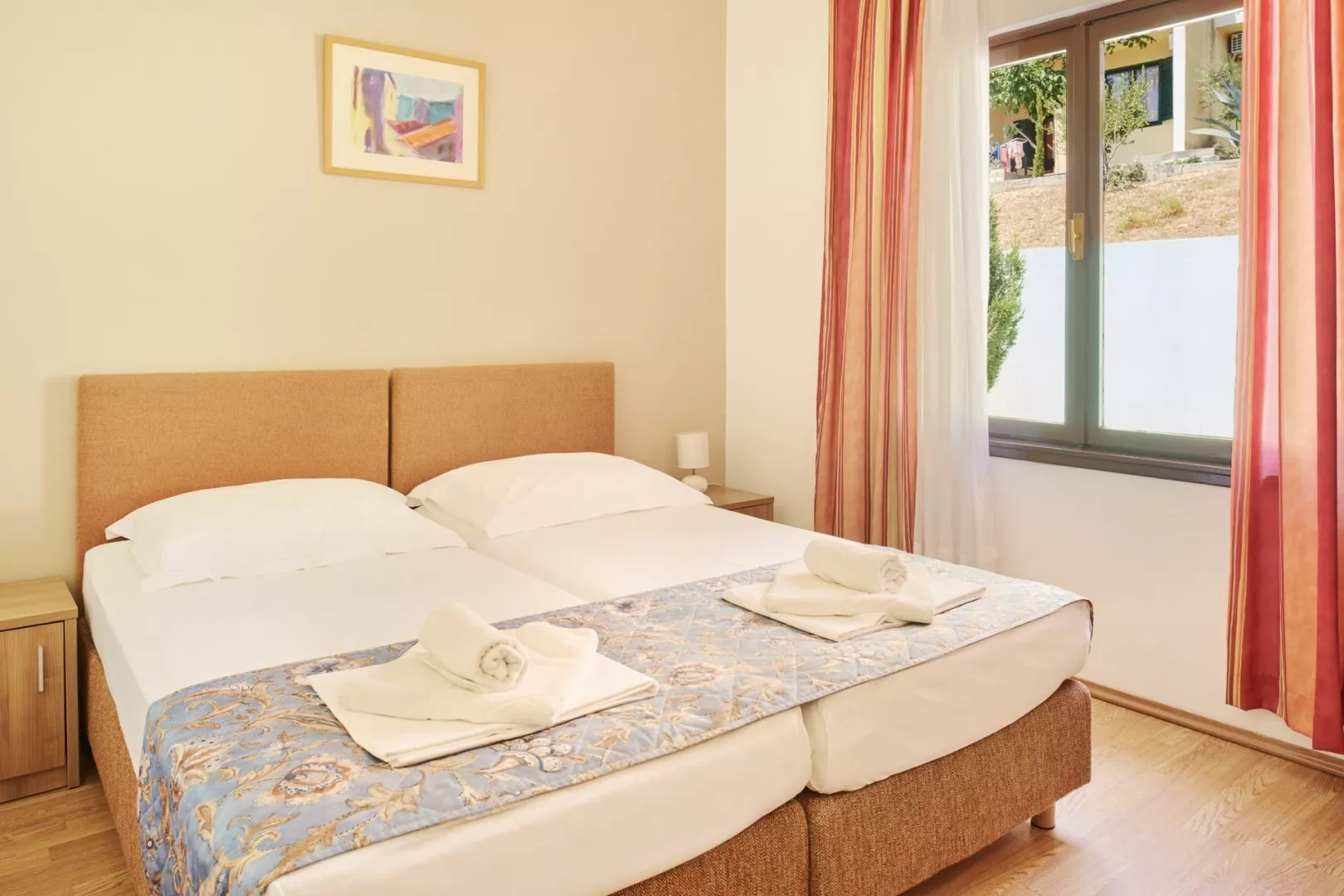 Apartmány sú rôzneho typu a sú vybavené obývacou izbou s rozkladacou pohovkou, menšou kuchynkou (chladnička, rýchlovarná kanvica, mikrovlnná rúra), vlastným sociálnym zariadením, klimatizáciou a TV. K dispozícii sú apartmány pre 2+2 a 4+2 osoby s terasou alebo balkónom a bezplatným pripojením na internet.