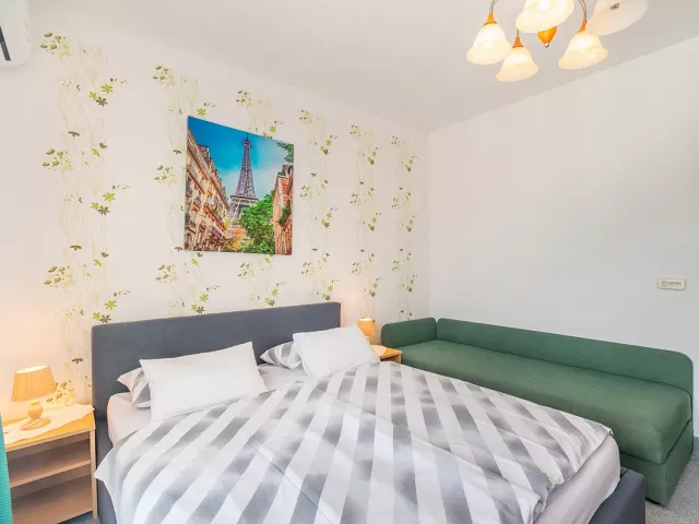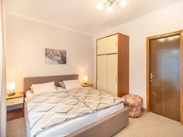 Apartmány Darko sa nachádzajú vo Vodiciach v pokojnej časti Želino a ponúkajú ubytovanie s terasou alebo balkónom, z ktorých sa naskytá krásny výhľad na mesto aj more. K dispozícii je starostlivo udržiavaná záhrada a zastrešené vonkajšie posedenie, kde si môžete načapovať čapované pivo alebo si pripraviť večeru na grile. Atmosféru spríjemňuje priateľský zlatý retriever Simba, obľúbený medzi deťmi aj dospelými. Po predchádzajúcej dohode s majiteľom je možné za poplatok zabezpečiť prípravu domáceho grilovaného jedla či ďalších miestnych špecialít.Upozornenie: Tieto stránky majú informatívny charakter. Travel.Sk neručí za chyby alebo neaktuálnosť zverejnených údajov. CK je oprávnená kedykoľvek predĺžiť, zrušiť alebo zmeniť prezentované ponuky, zľavy, bonusy alebo podmienky poskytnutia služby. Záväzný je až návrh zmluvy o zájazde predkladaný zákazníkovi na základe jeho nezáväznej objednávky.