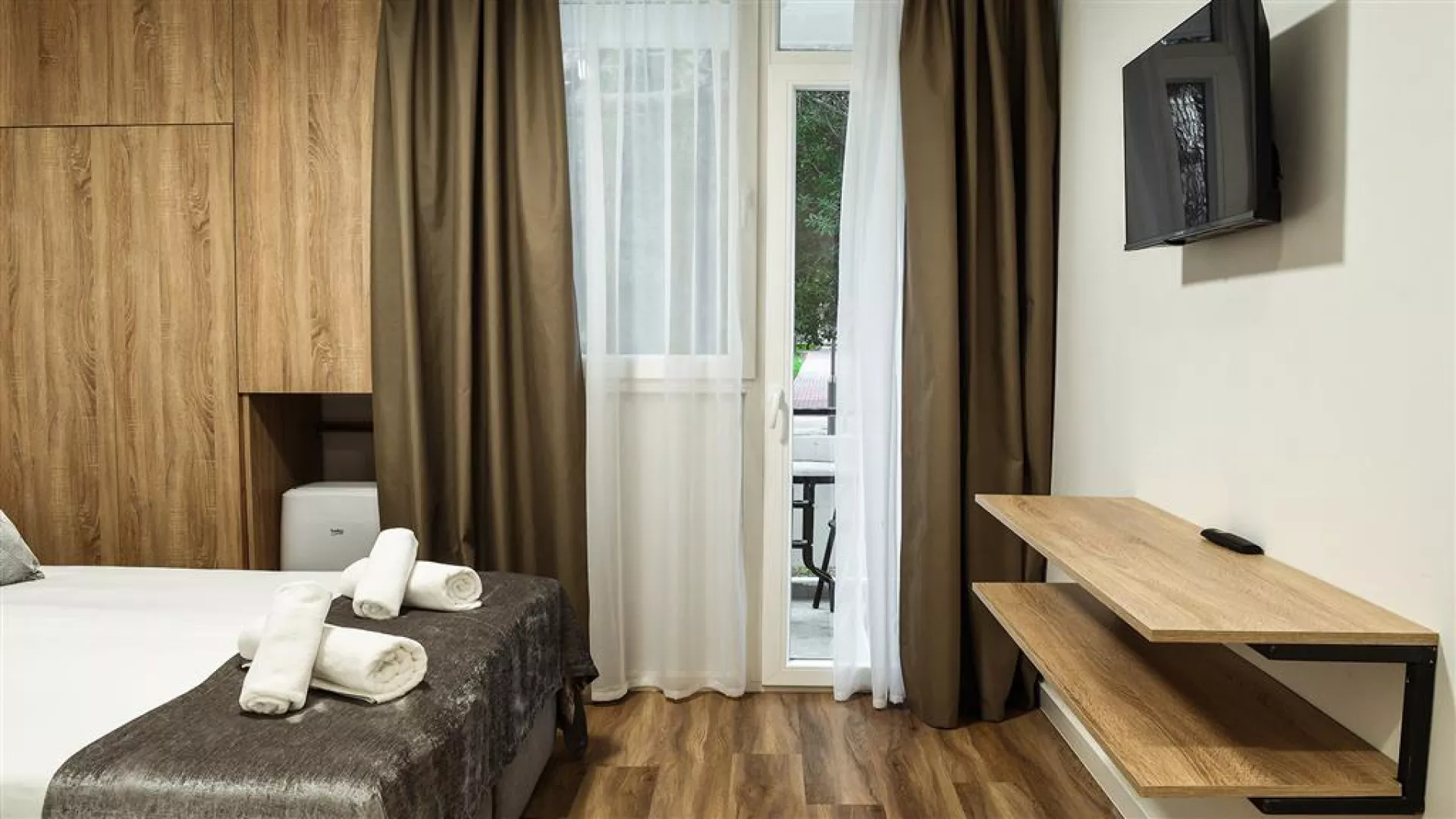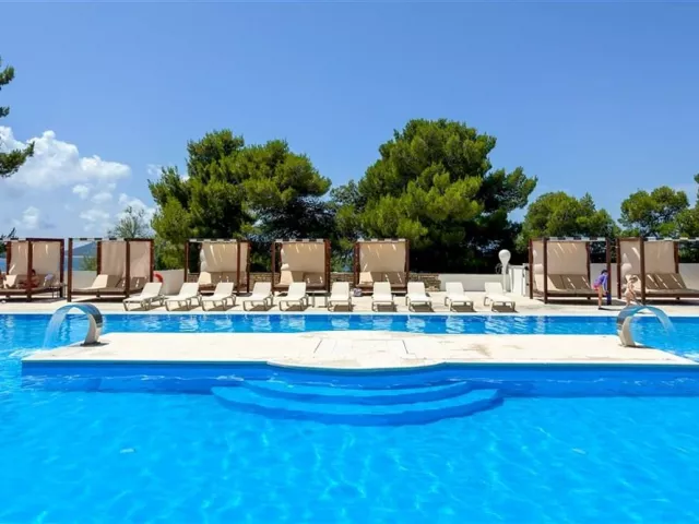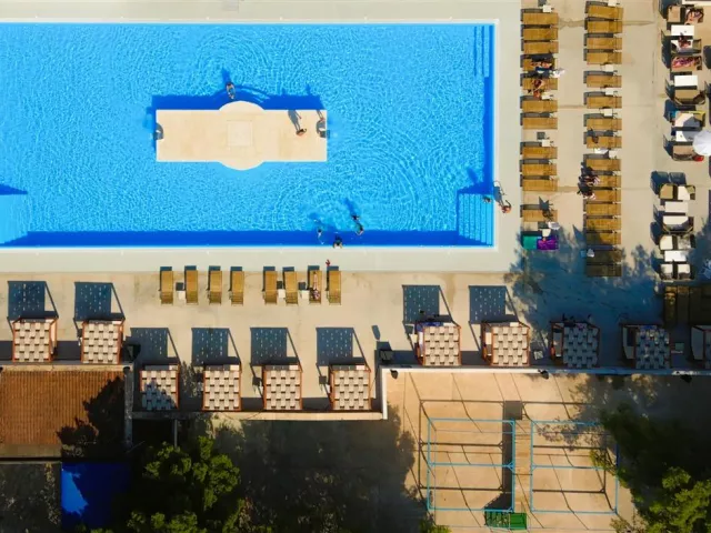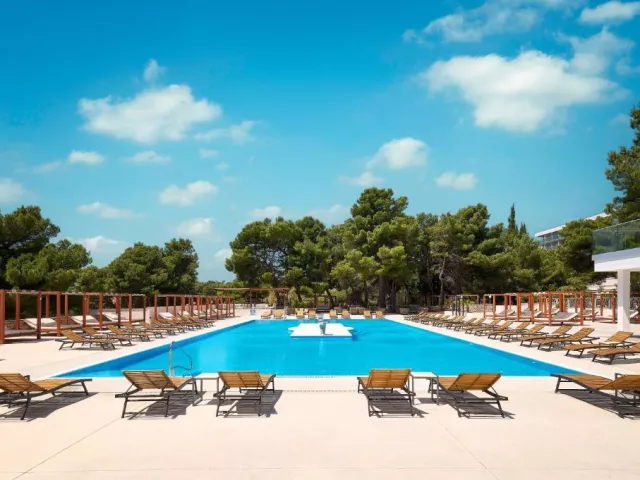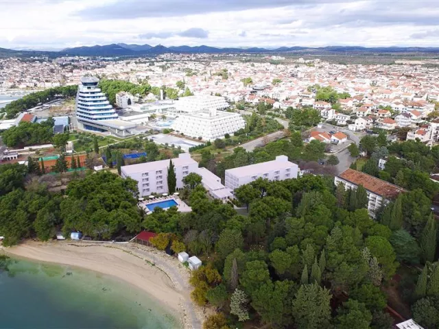 Hotelový komplex Imperial Green sa nachádza v píniovom háji na okraji obľúbeného letoviska Vodice, približne 1 km od centra mesta. Je situovaný priamo pri kamienkovo-štrkovej pláži, ktorá je vzdialená asi 50 metrov a ponúka pozvoľný vstup do mora.