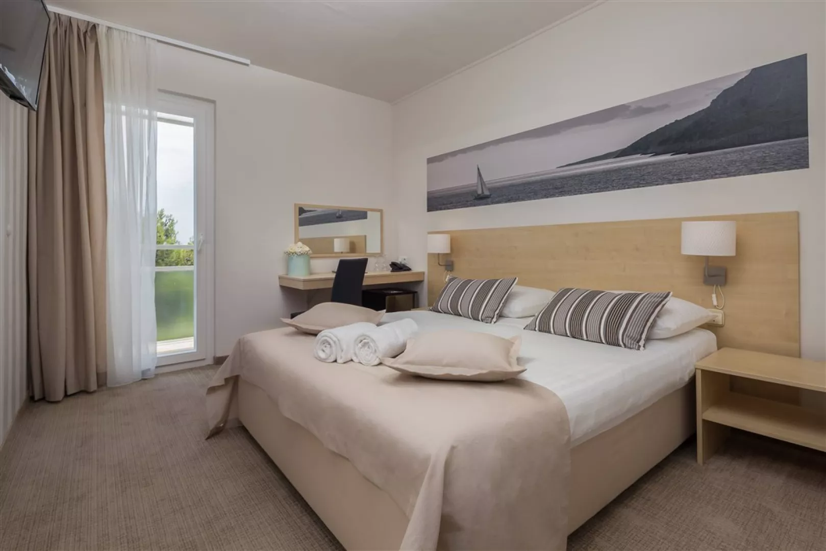 V ponuke sú moderne zariadené klimatizované 2-lôžkové izby typu CLASSIC a SUPERIOR s možnosťou jednej prístelky. Izby obsahujú sprchu/WC, fén, SAT TV, telefón, trezor, minibar a balkón s výhľadom na more.