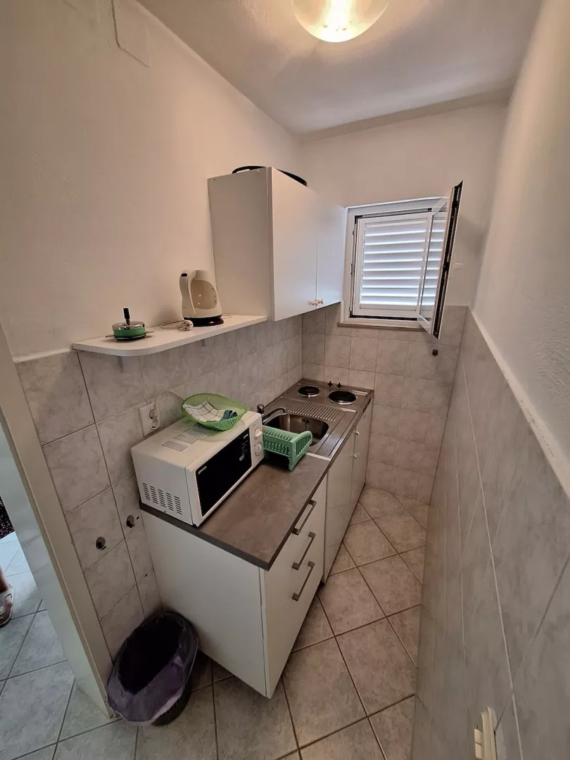 Rodinný dom s celkovým počtom 5 apartmánov sa nachádza na konci slepej ulice v pokojnej vilovej štvrti. V blízkosti nájdete supermarket a pekáreň. Vzdialenosti sú: pláž 270 m, centrum 300 m, nákupné možnosti 250 m.