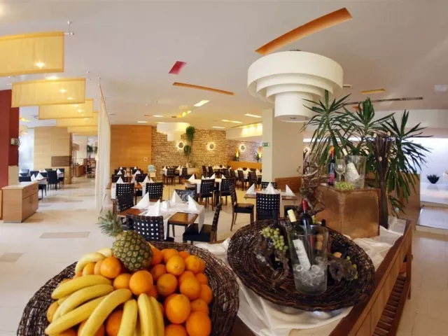 Hotel poskytuje stravovanie formou all inclusive plus, ktoré zahŕňa bohaté raňajky, obedy a večere formou bufetu s nealkoholickými a miestnymi alkoholickými nápojmi.
