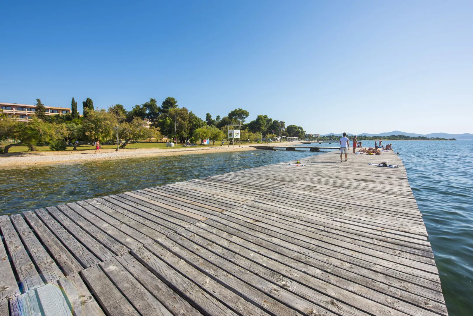 V blízkosti hotela sa nachádza štrková pláž ocenená modrou vlajkou za kvalitu služieb a čistotu mora. Pláž je oddelená parkovou zeleňou a ponúka pieskový záliv s pozvoľným vstupom do mora. Na pláži sú k dispozícii ležadlá (za poplatok), plážový bar a reštaurácia, ako aj možnosti na zapožičanie športových potrieb na vodné športy.