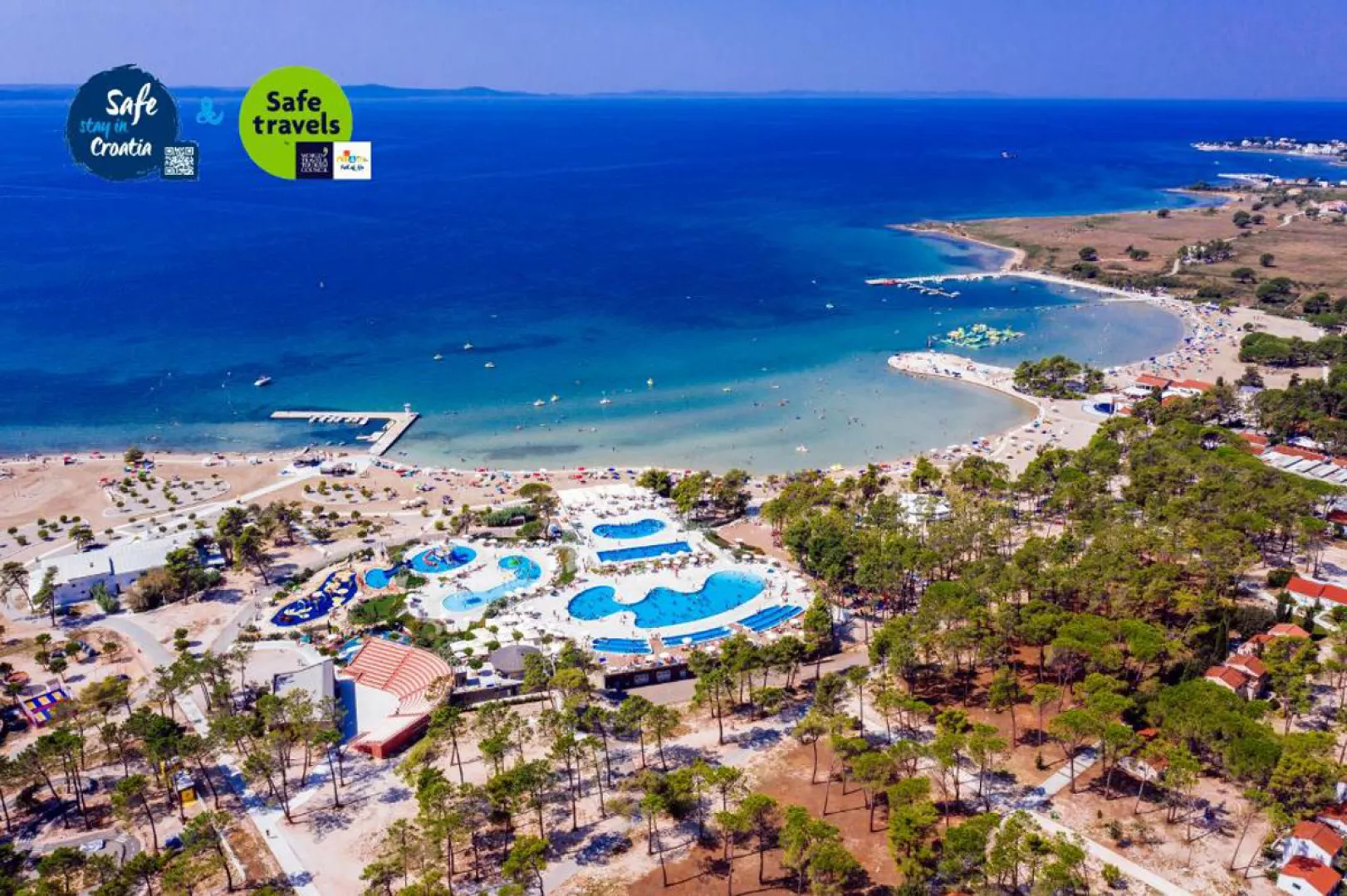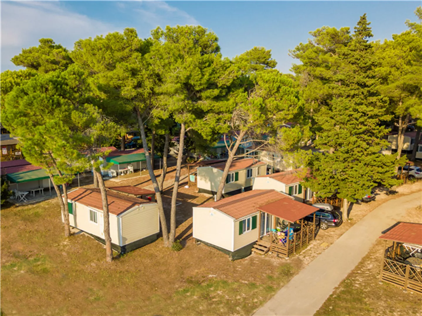 Mobilné domčeky sa nachádzajú v kempe, na miernom svahu borovicového lesíka, blízko mestečka Nin a len 15 km od mesta Zadar.