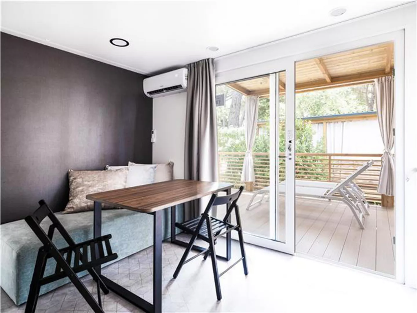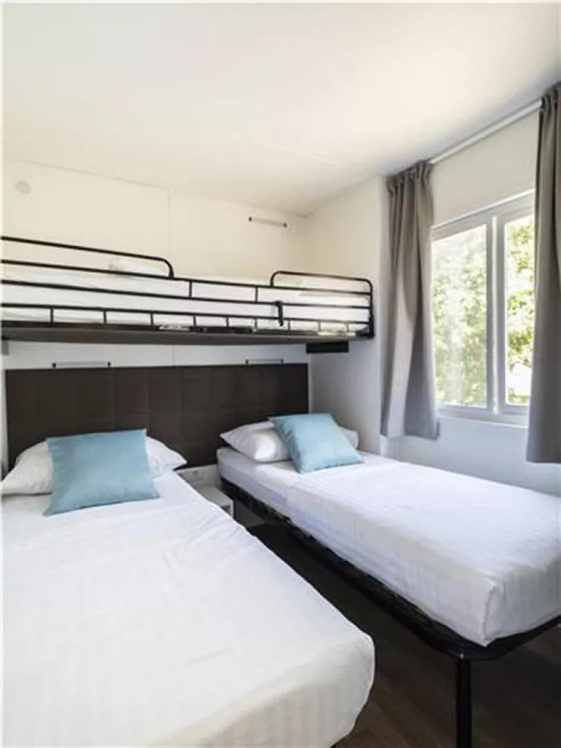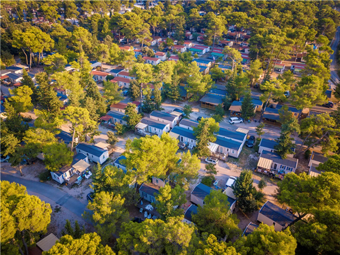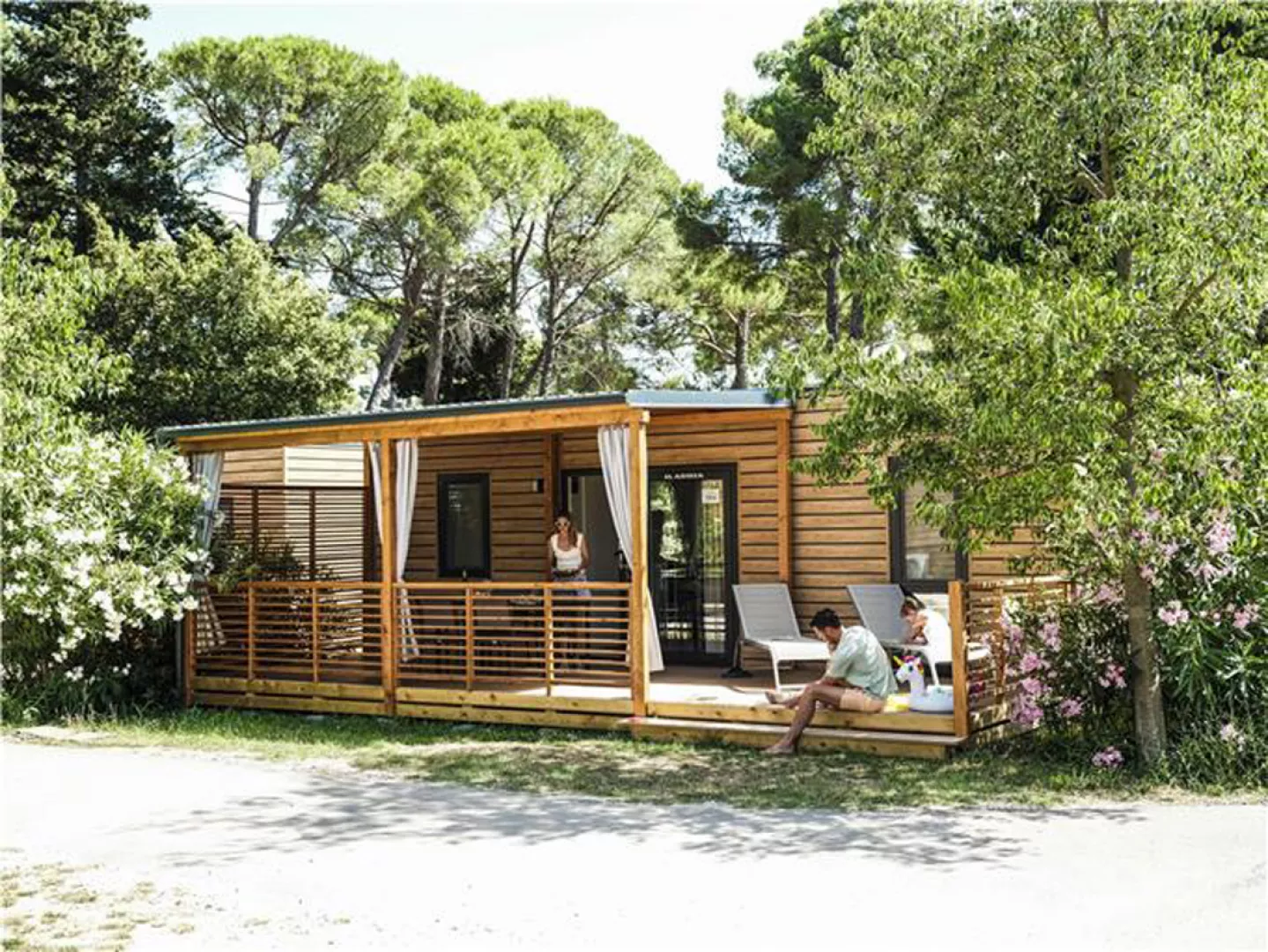 Klimatizované, kompletne vybavené mobilné domčeky poskytujú komfortné ubytovanie v pokojnom prostredí obklopenom mediteránskou zeleňou.