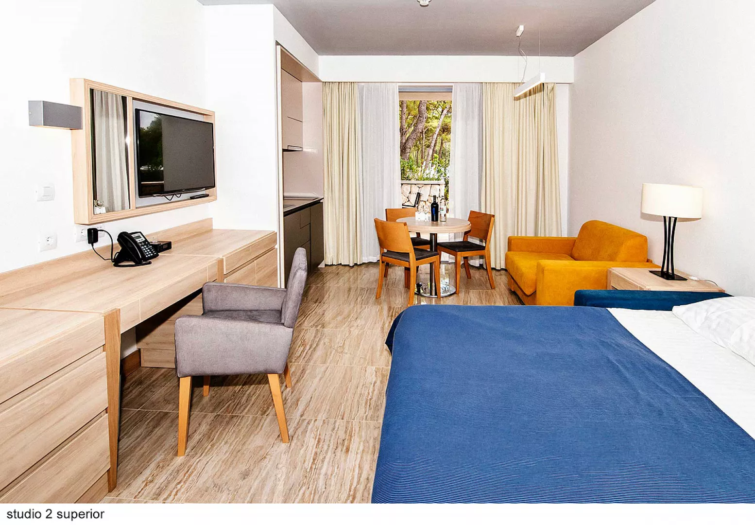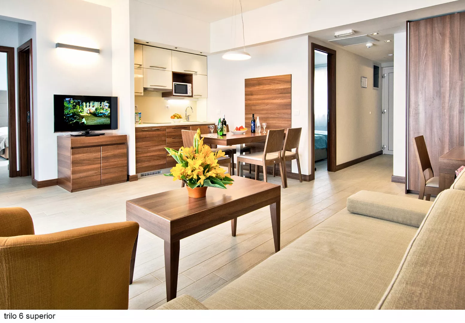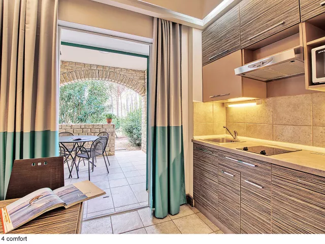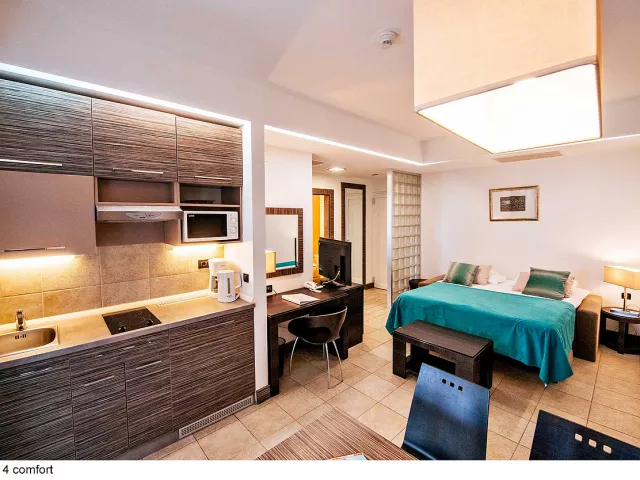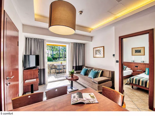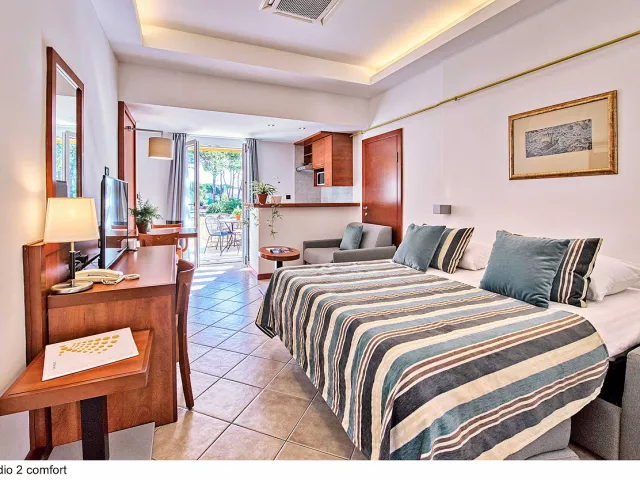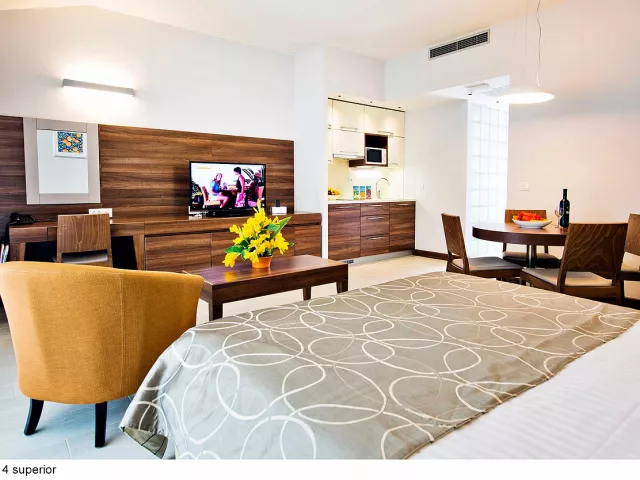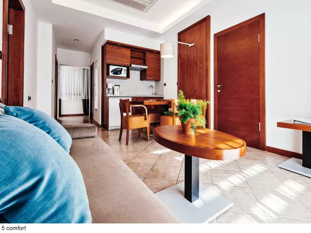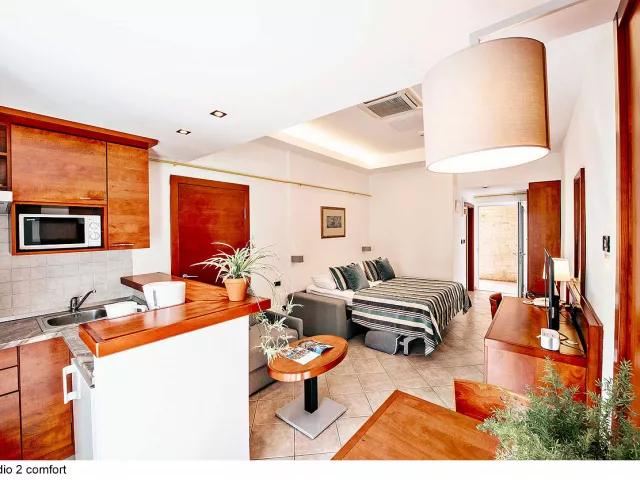 Apartmány sú rozdelené do dvoch kategórií: COMFORT a SUPERIOR, pričom druhé sú väčšie a majú novší nábytok. K dispozícii sú apartmány rôznych veľkostí, ktoré sú vybavené kuchynským a jedálenským kútikom, sprchou/WC, klimatizáciou a SAT TV. Niektoré apartmány majú aj terasu alebo balkón.