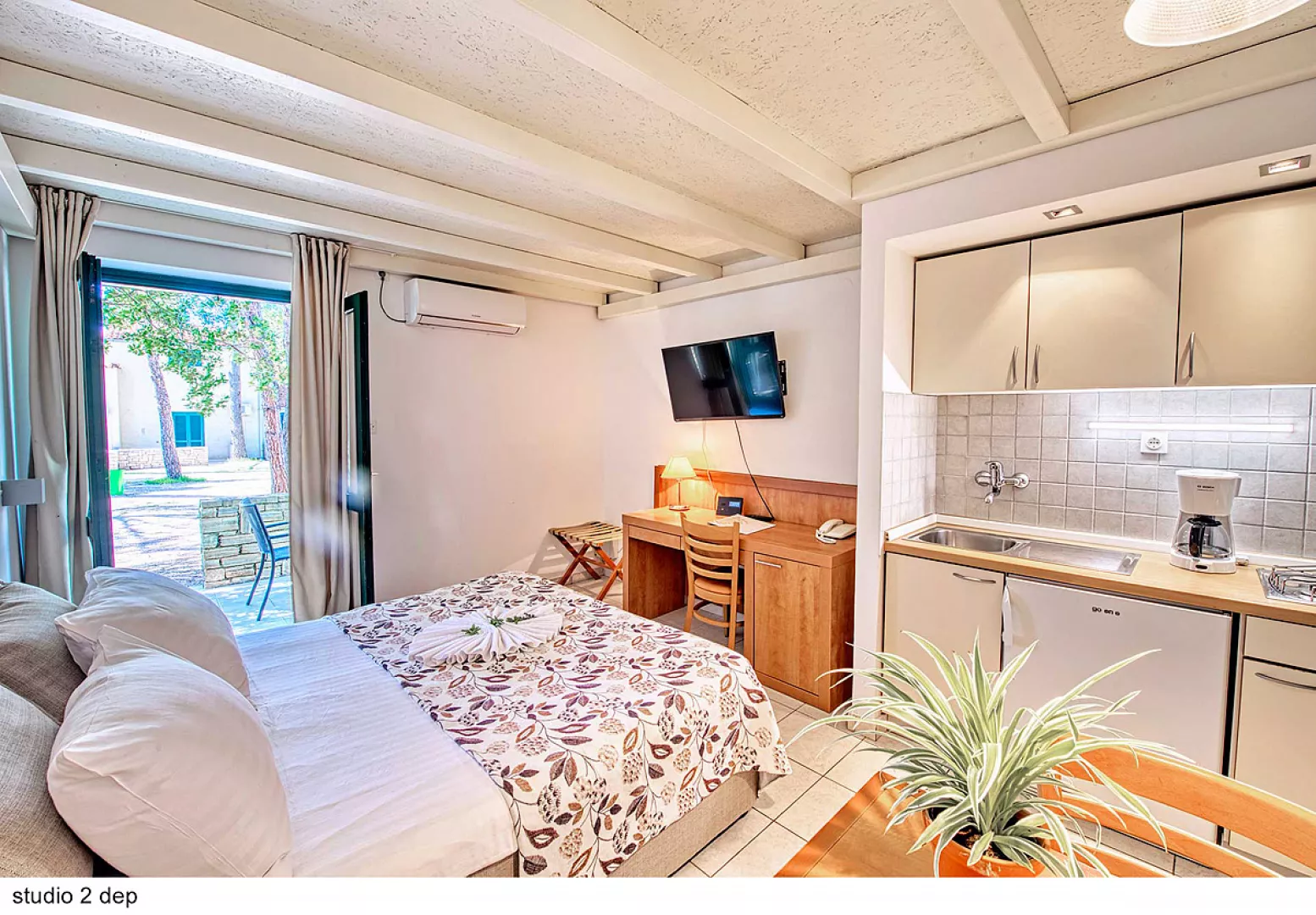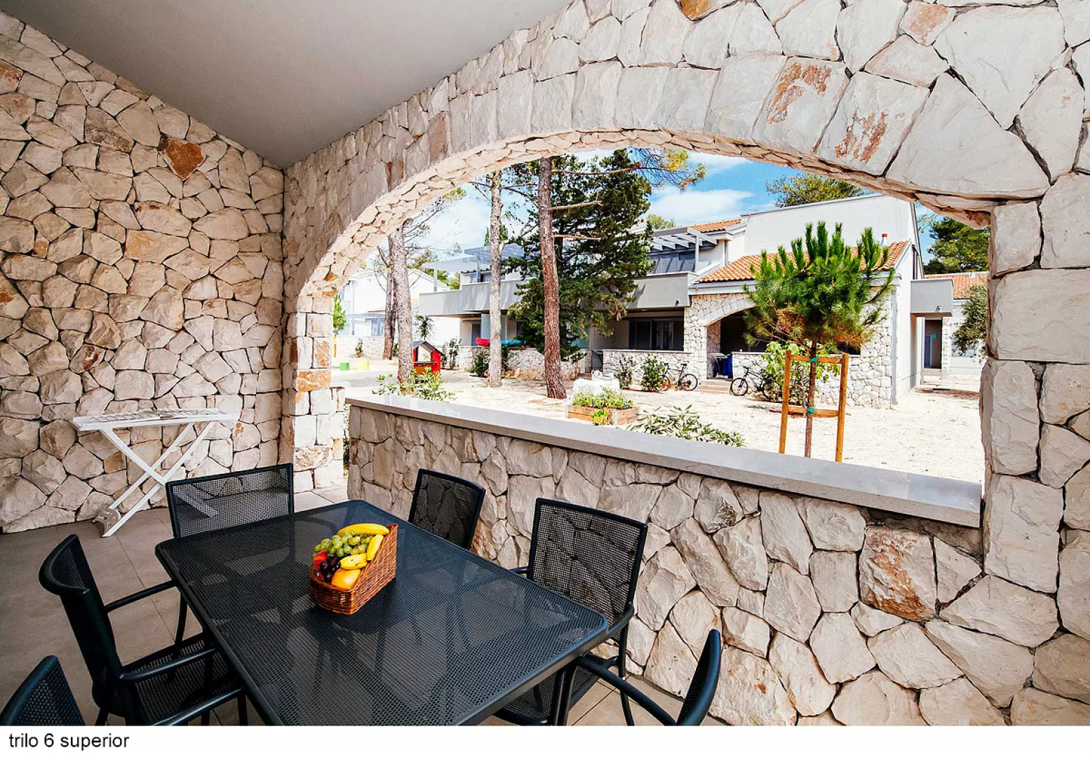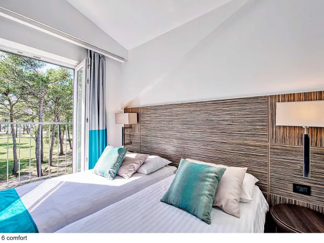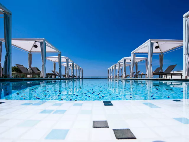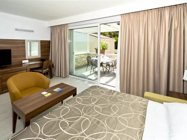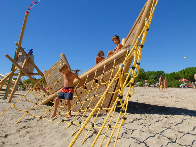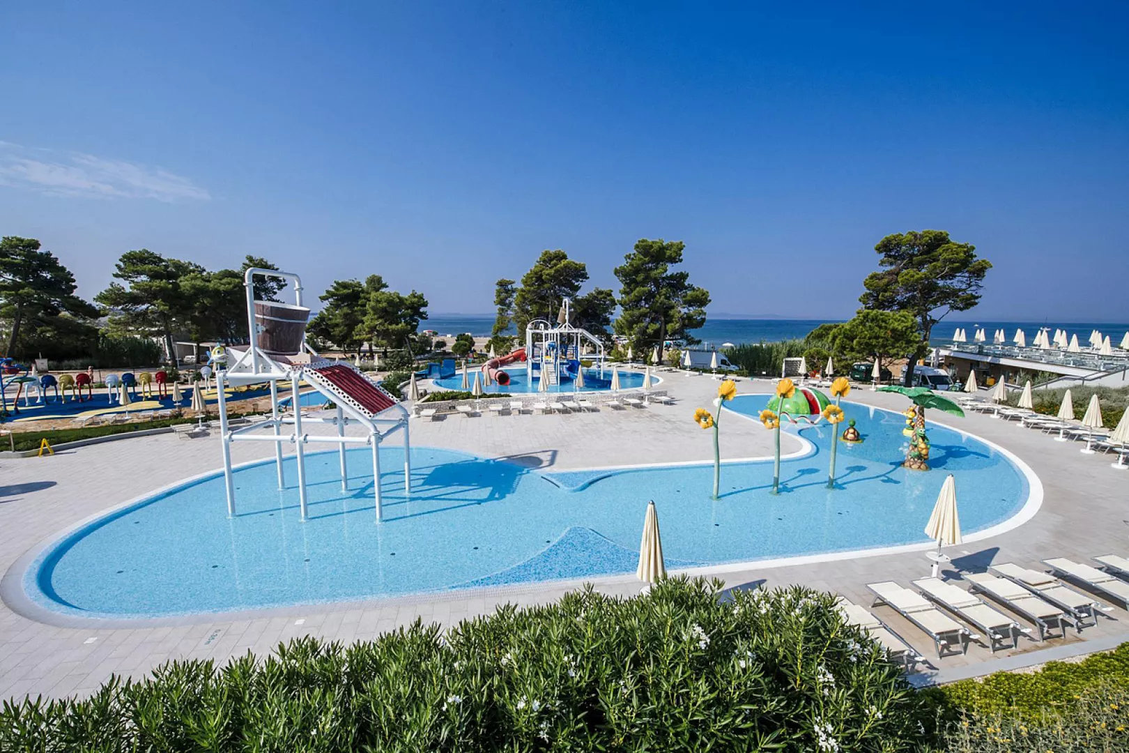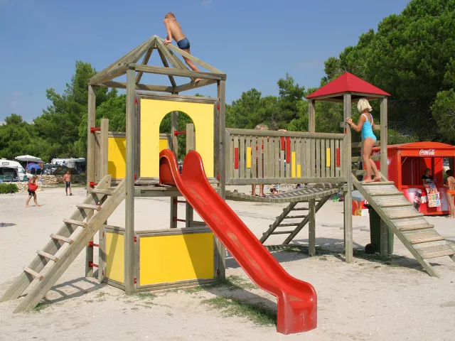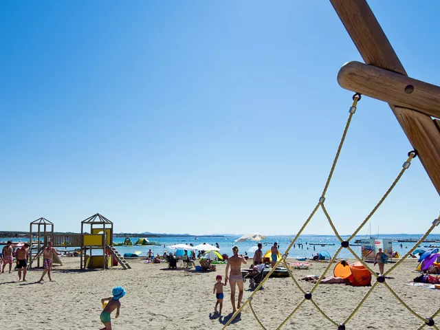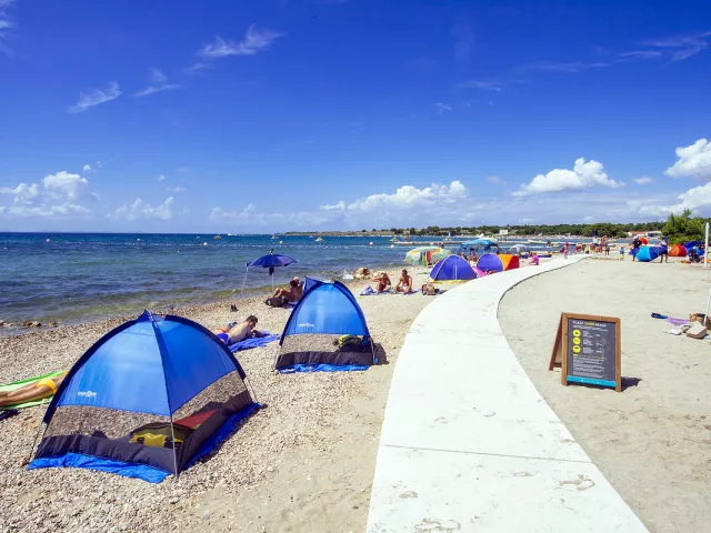 Komplex ponúka pohodlné ubytovanie len 150 až 350 m od piesočnatej a štrkovej pláže, ktorá má dĺžku viac ako 2 km. Pláž sa nachádza v chránenej zátoke s veľmi pozvoľným vstupom do mora a plytkým dnom, ideálnym pre rodiny s deťmi.