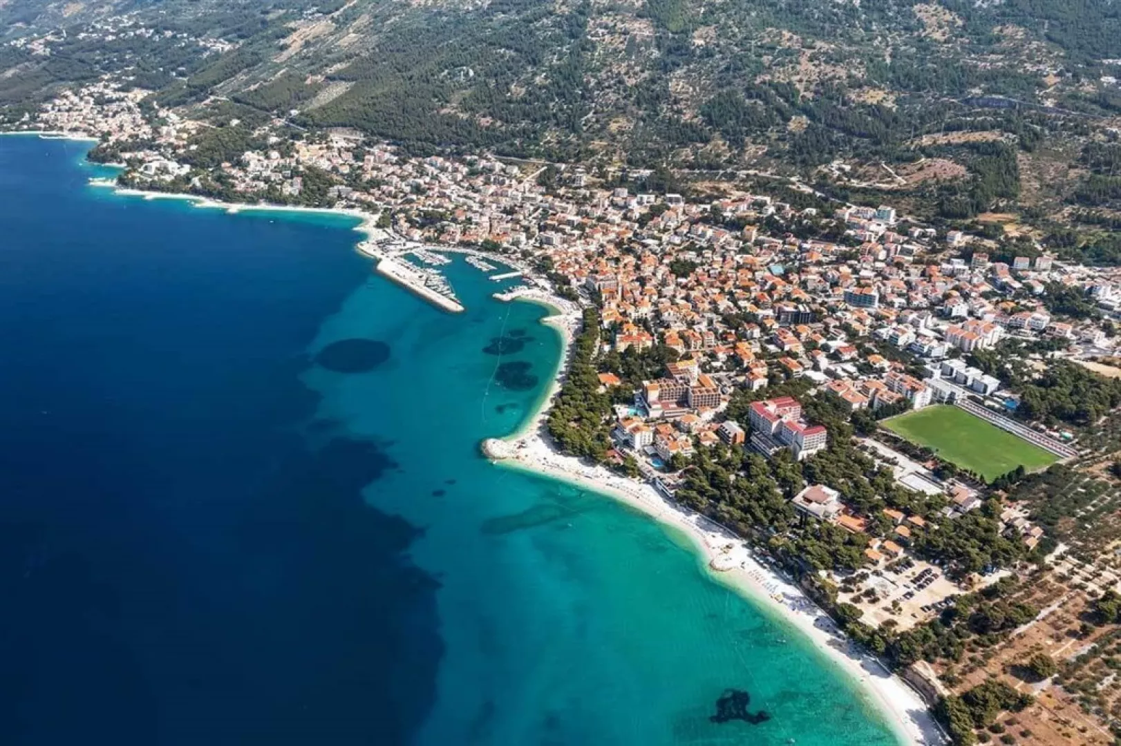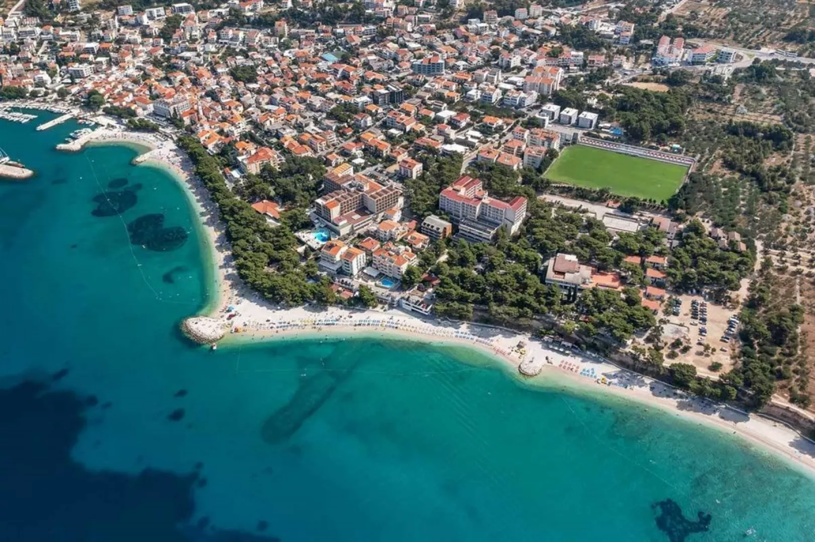 Apartmány Family Resort Urania sa nachádzajú v južnej časti rušného letoviska Baška Voda, len asi 500 metrov od centra mestečka. Komplex je situovaný v blízkosti štrkovo-kamienkovej pláže, pričom vzdialenosť k nej sa pohybuje medzi 50 a 150 metrami.
