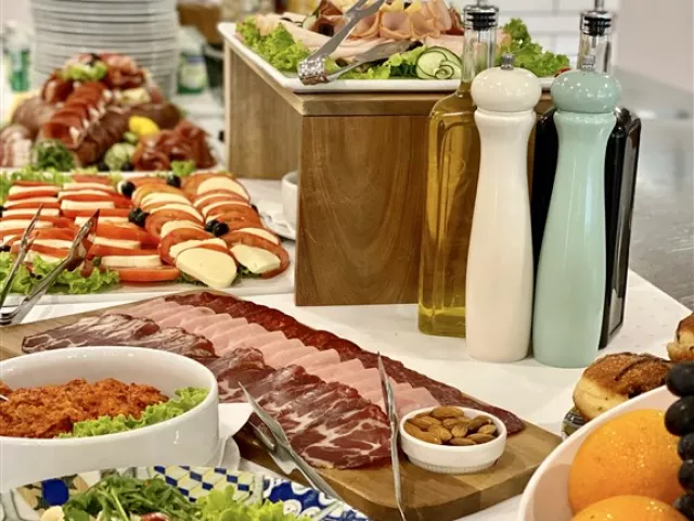 Stravovanie je zabezpečené formou polpenzie, ktorá zahŕňa raňajky a večere podávané formou bufetu v centrálnej reštaurácii. Počas večere sú k dispozícii čapované nealkoholické nápoje, ako sú malinovka, voda, káva a čaj.