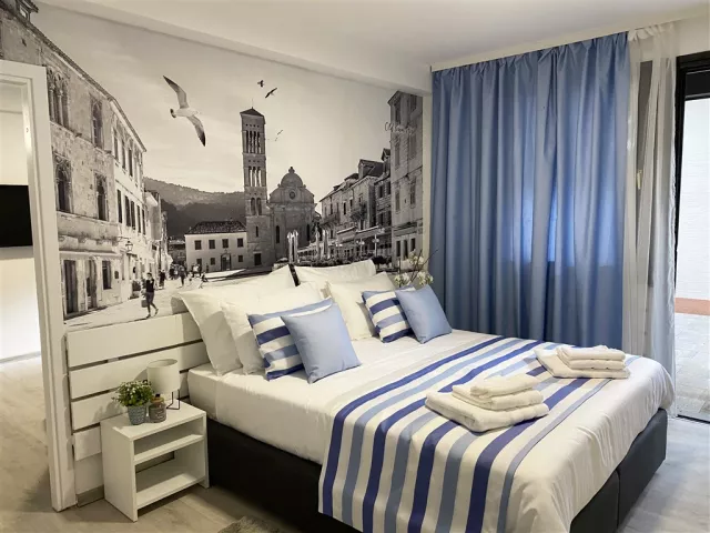 Apartmány sú klimatizované a nachádzajú sa na poschodí. Typ STANDARD SUITE 2+2 B má balkón a je určený pre 2 až 4 osoby. Obsahuje 2-lôžkovú spálňu s manželskou posteľou, obývaciu miestnosť s rozkladacím gaučom vhodným pre deti, mini kuchynský kútik s indukčnou varnou doskou, rýchlovarnou kanvicou a chladničkou, dve sprchy/WC, SAT TV a bezplatné WiFi pripojenie.