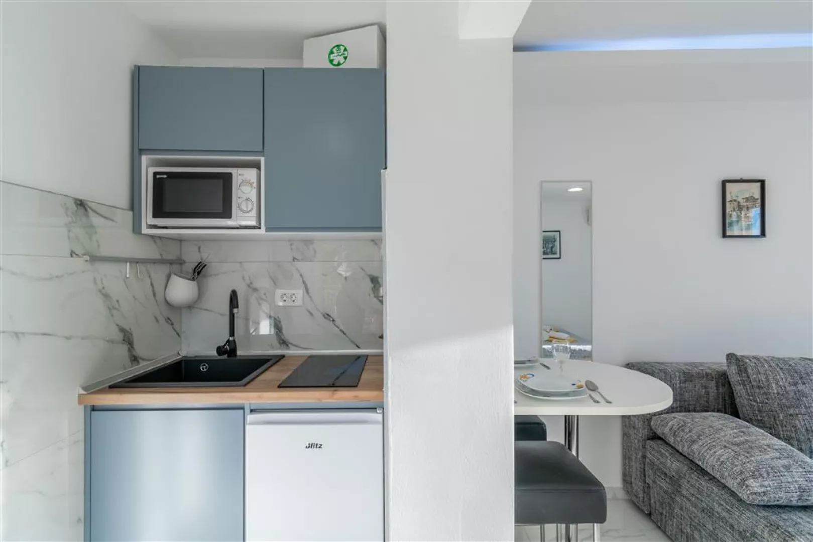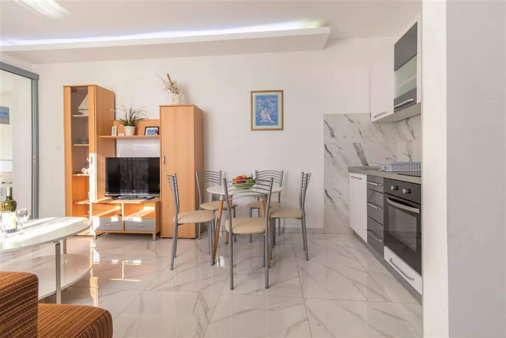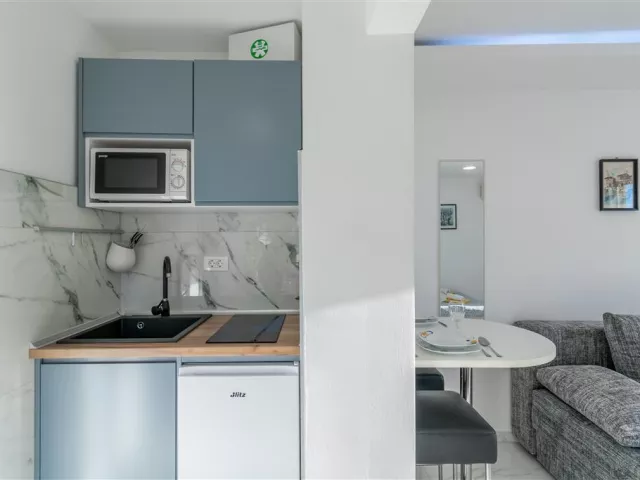 Apartmány sú bez stravy, avšak s možnosťou varenia. Možné je aj priplatenie stravovania v reštaurácii hotela Palac, ktorá sa nachádza priamo na pobrežnej promenáde. K dispozícii je polpenzia, ktorá zahŕňa raňajky formou bufetu a obed alebo večeru s jedným hlavným jedlom a nápojom.