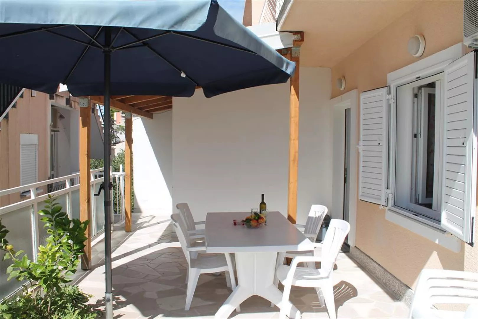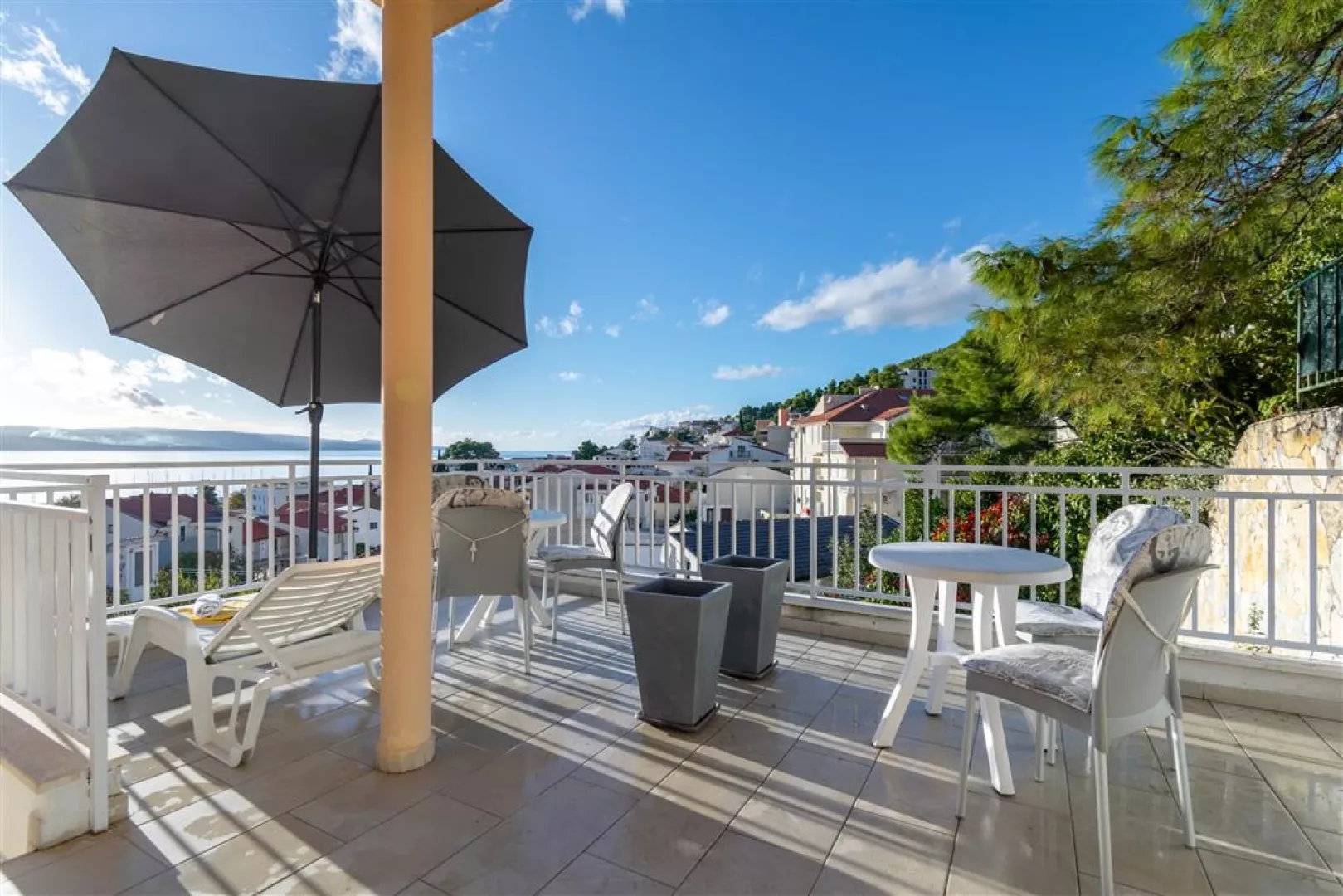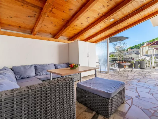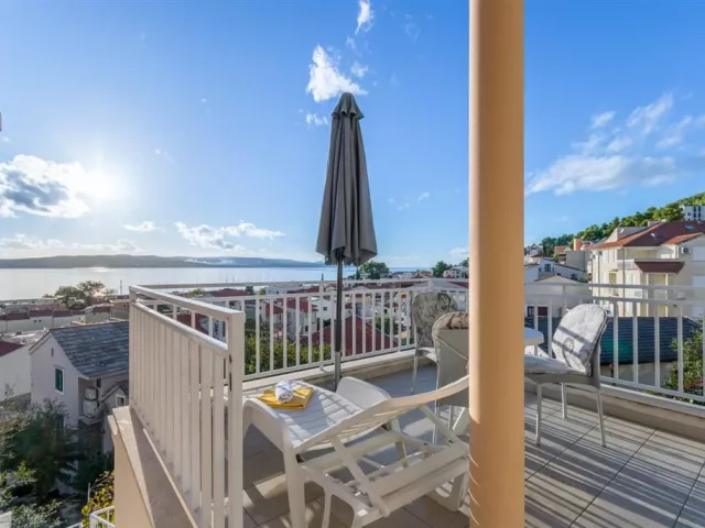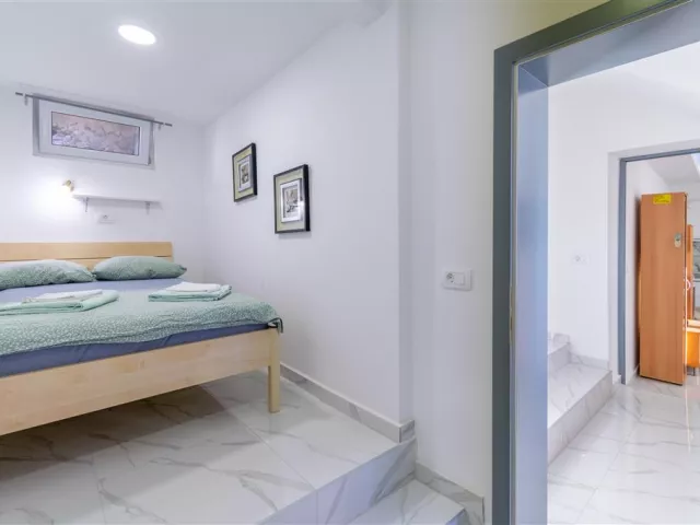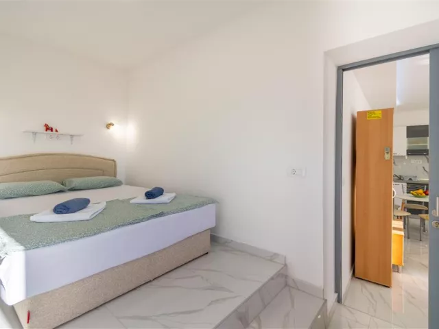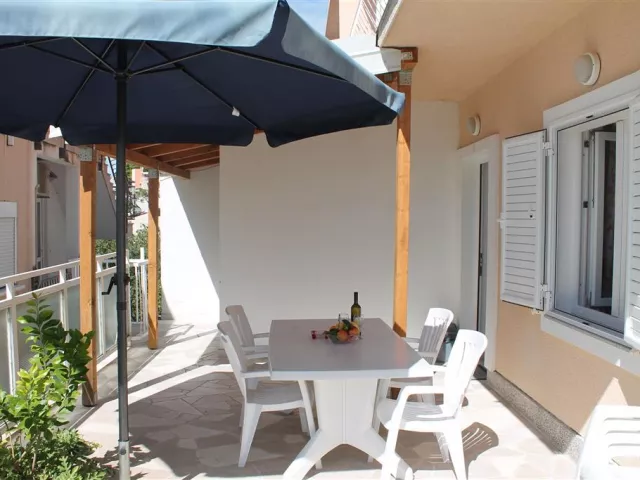 Privátna vila sa nachádza v tichej uličke na kopci, obklopená rodinnými vilami. K jednotlivým apartmánom je prístup po schodoch. Hlavná pobrežná promenáda a štrkovo-kamienková pláž sú vzdialené cca 300 m. Ležadlá a slnečníky na pláži sú k dispozícii za poplatok.