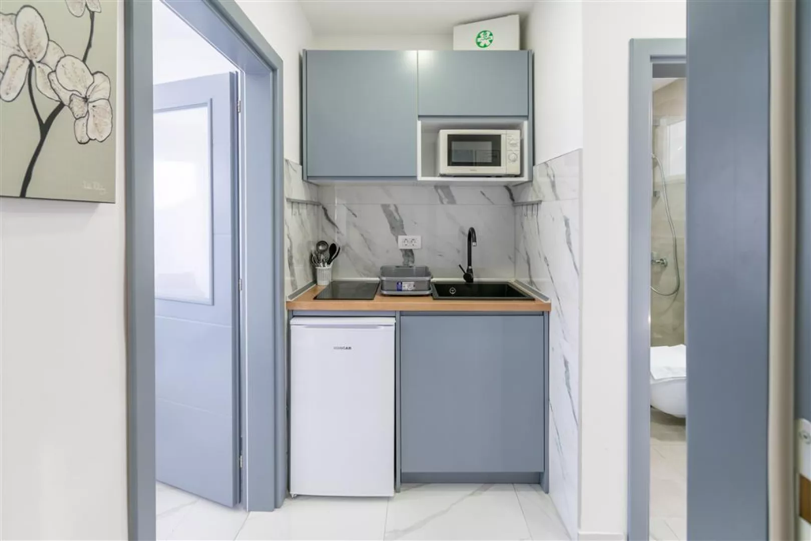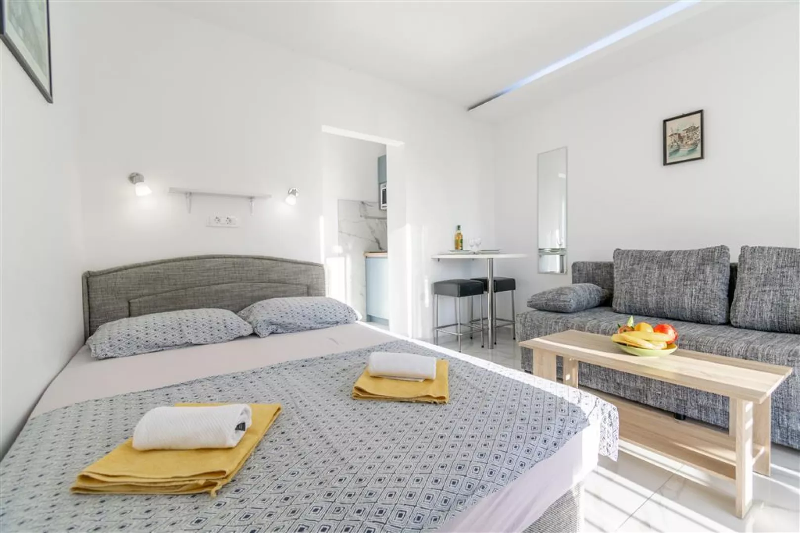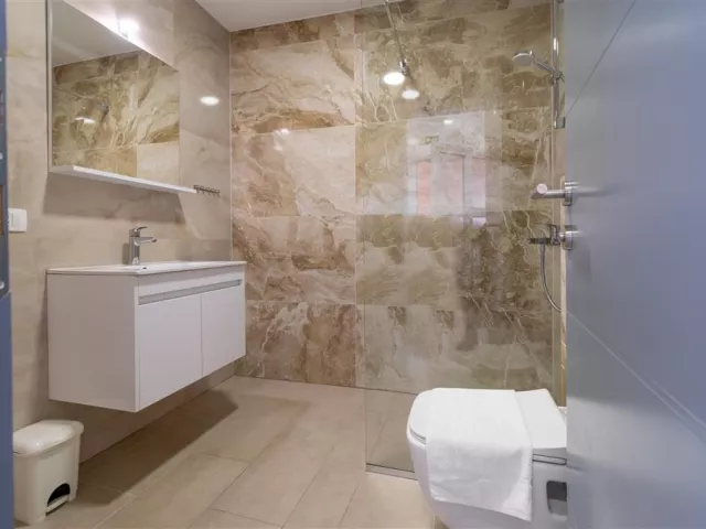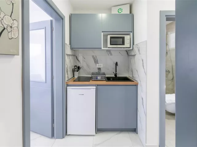 Ubytovanie pozostáva z moderne zariadených klimatizovaných apartmánov, ktoré sú vybavené kuchynským kútikom v obývacej miestnosti, mikrovlnkou, sprchou/WC a SAT TV. K dispozícii sú nasledujúce typy apartmánov: