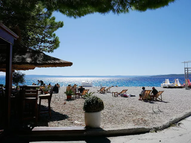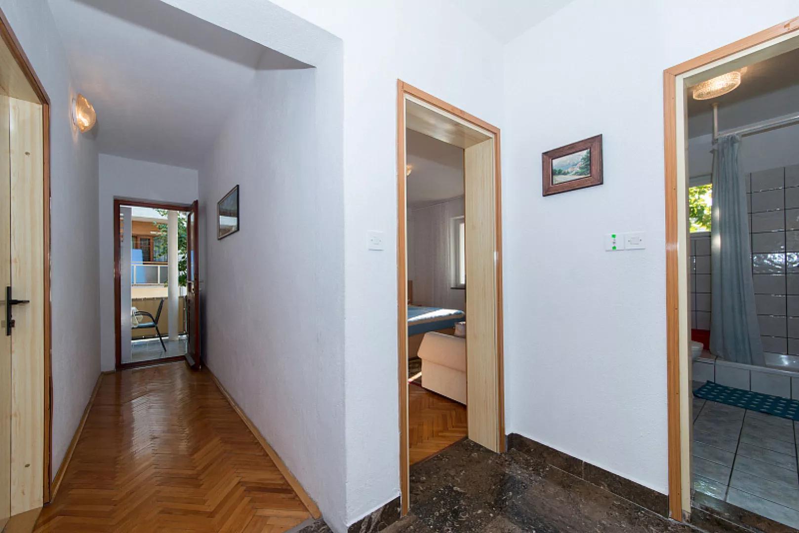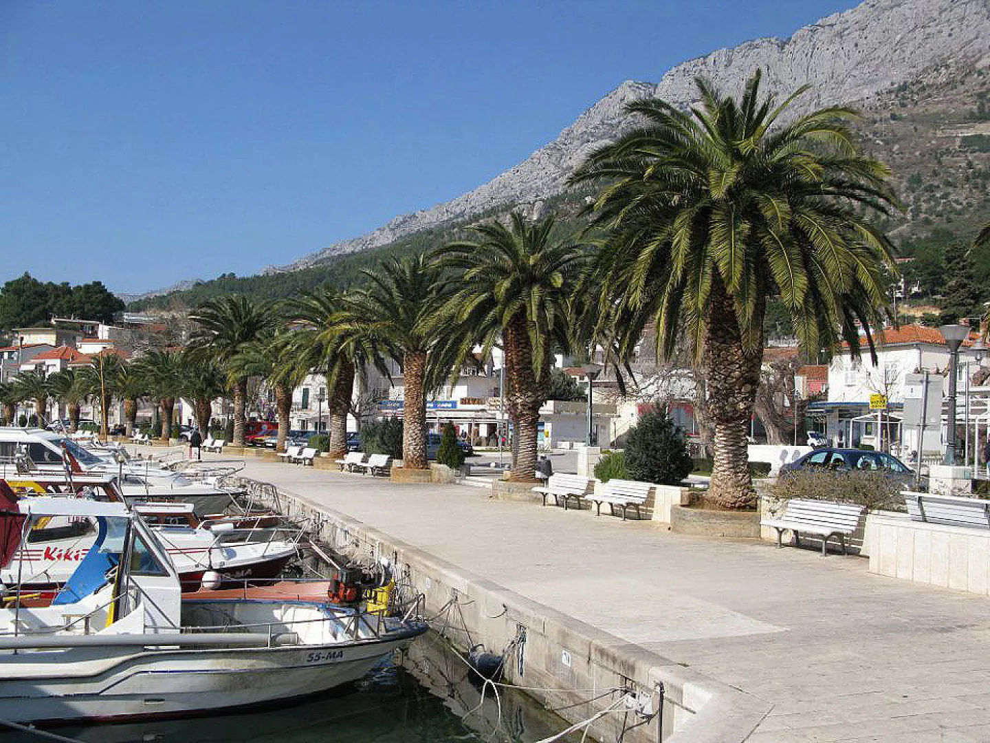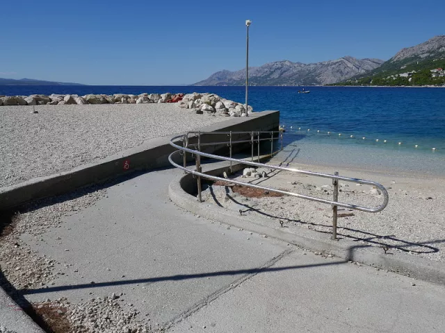 Baška Voda, centrum - 180 m, pláž / okruhliaková s pozvoľným vstupom do mora - 180 m, letisko Split - 71 km