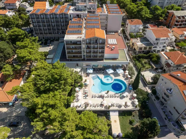Hotel Horizont je situovaný v borovicovom háji, približne 200 metrov od centra letoviska Baška Voda a v blízkosti promenády.