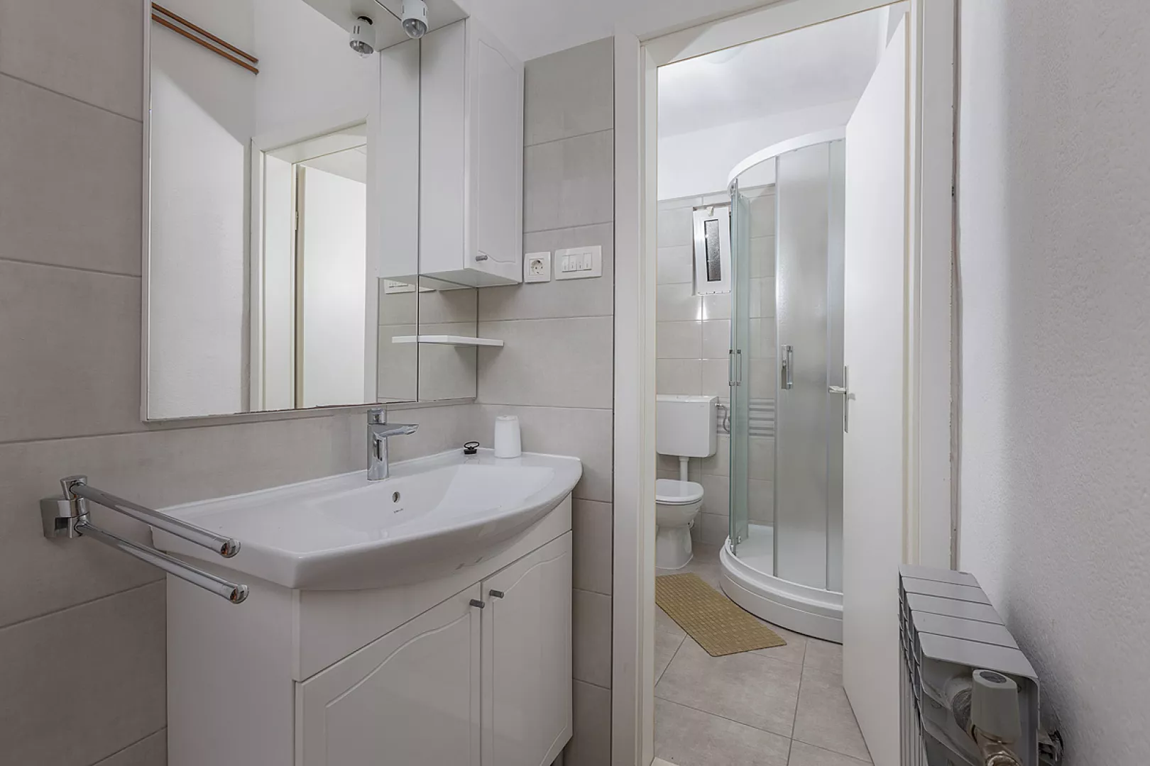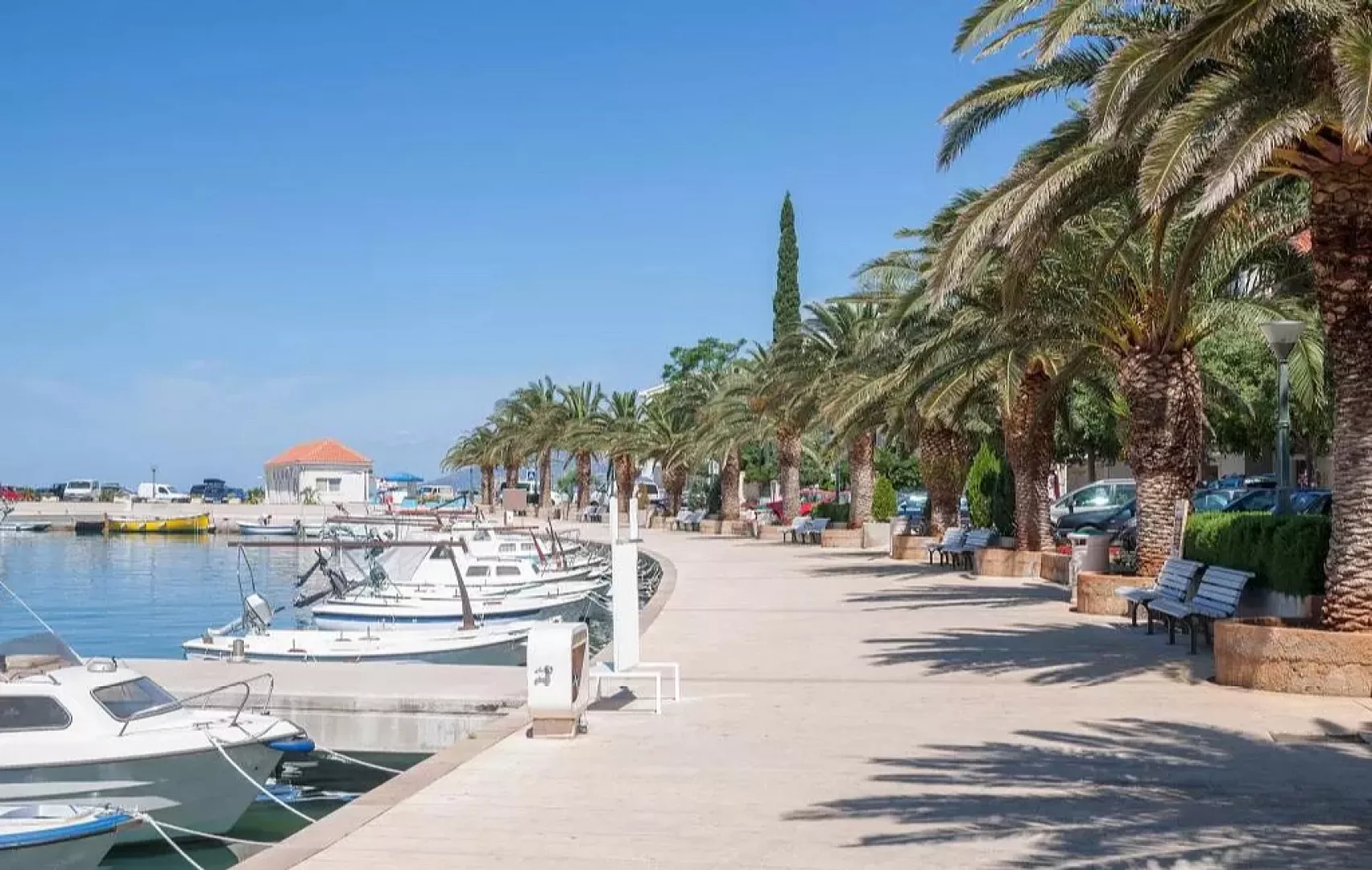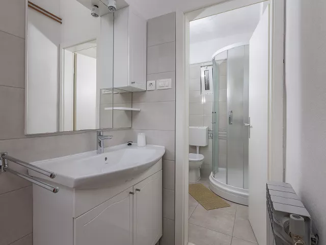 Baška Voda, centrum - 150 m, pláž / okruhliaková s pozvoľným vstupom do mora - 120 m, letisko Split - 70 km