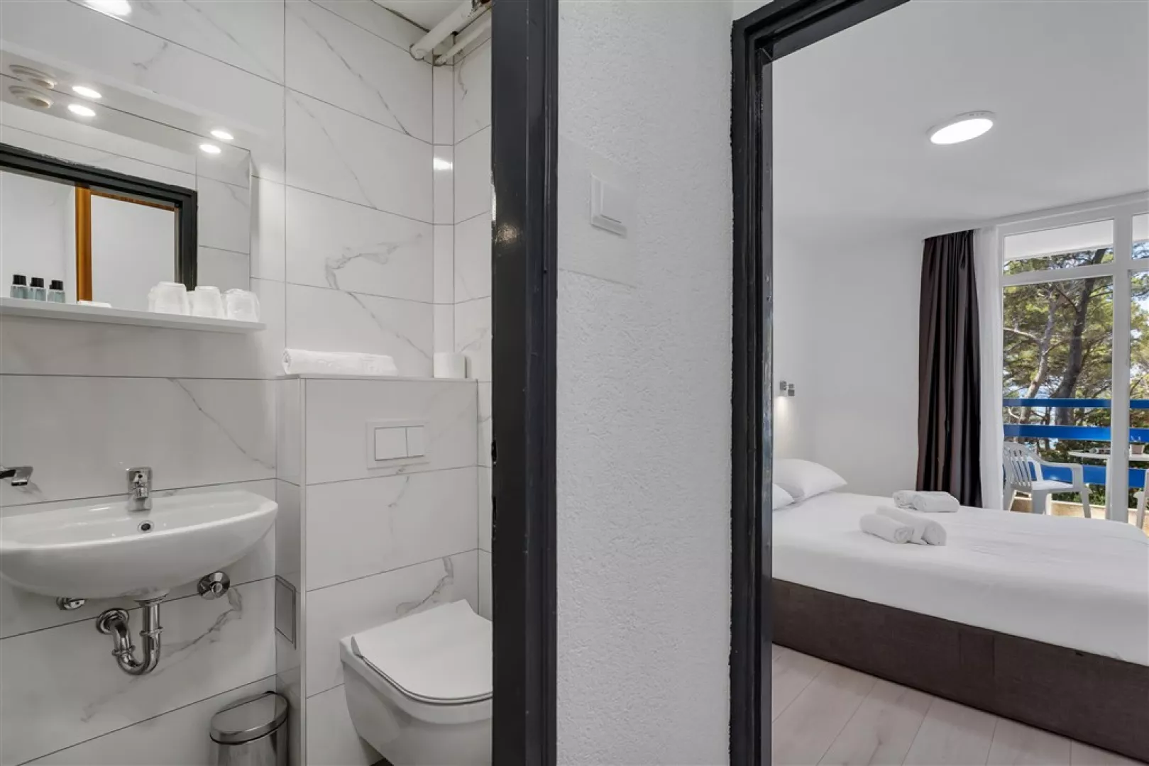Ubytovanie zahŕňa 2-lôžkové izby s možnosťou prístelky, ktoré sú rozdelené do dvoch typov: