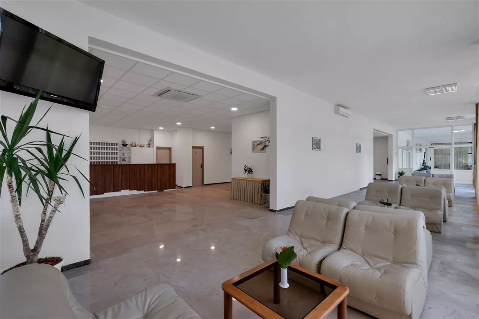 Komplex disponuje centrálne umiestnenou recepciou, WiFi internetovým pripojením zdarma, klimatizovanou reštauráciou, TV sálou a snack barom na pláži.