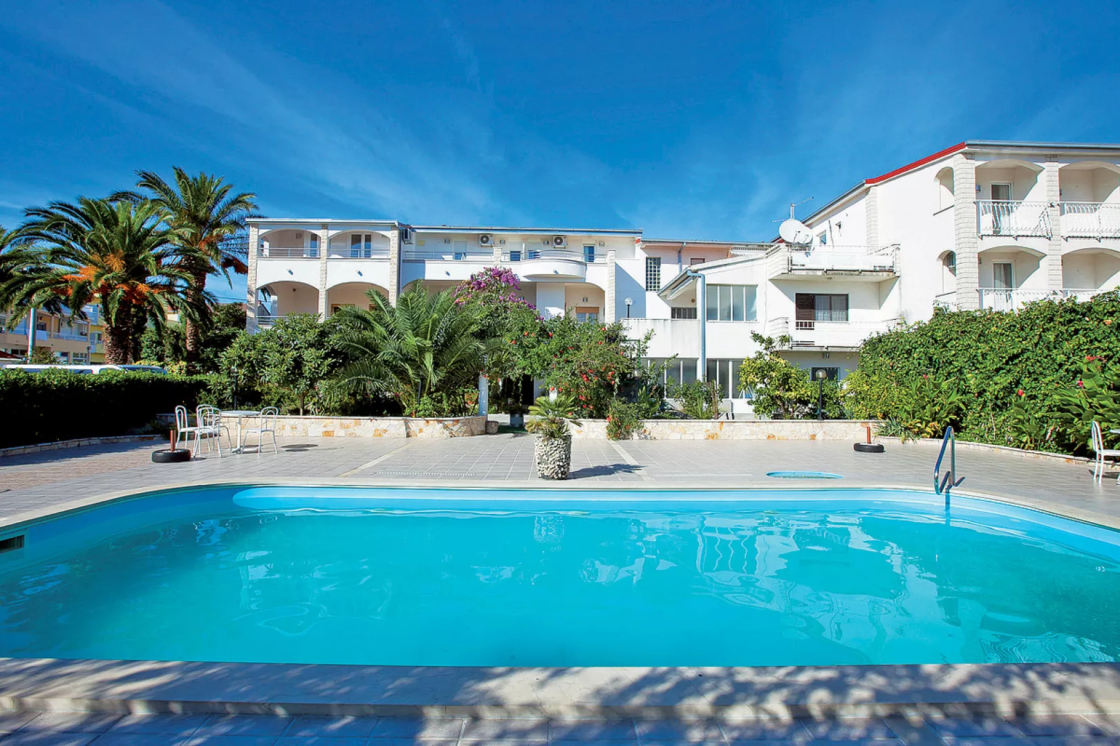 vonkajší bazén (10 x 4,5 m) s posedením a slnečníkmi, multifunkčné betónové ihrisko, stolný tenis, plážové ležadlá*, požičovňa bicyklov* * služby za príplatok